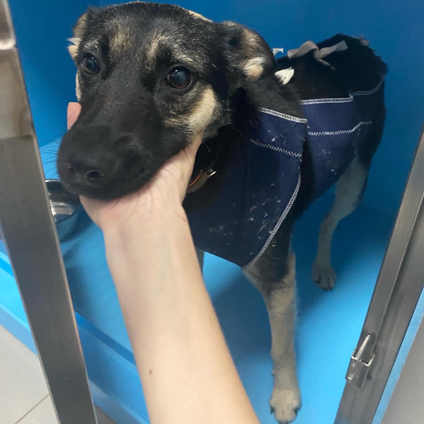 Тина сразу показала себя умницей. Полностью доверяла врачам, терпела все процедуры, и даже терпела туалетные дела в боксе до улицы... Она просто невероятная. Нежная, трепетная, очень добрая, спокойная девочка. Ей примерно 1 годик, совсем юная, фактически щенок. Только такая грустная... Она очень тянется к рукам. Она так реагирует на голос...ей так важна каждая секунда общения. На фото она грустная, но она так прижималась головой к руке и ценила эти мгновения...