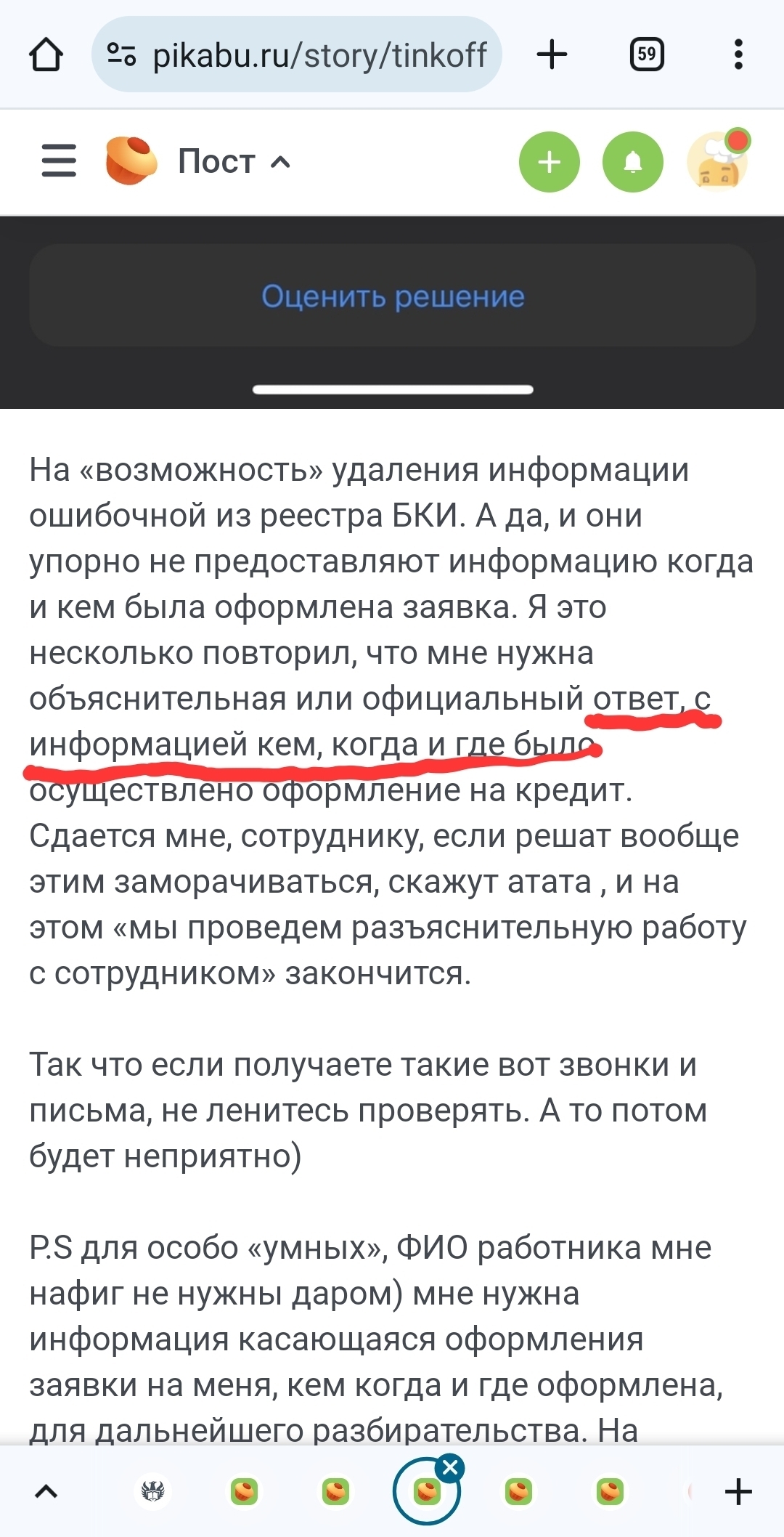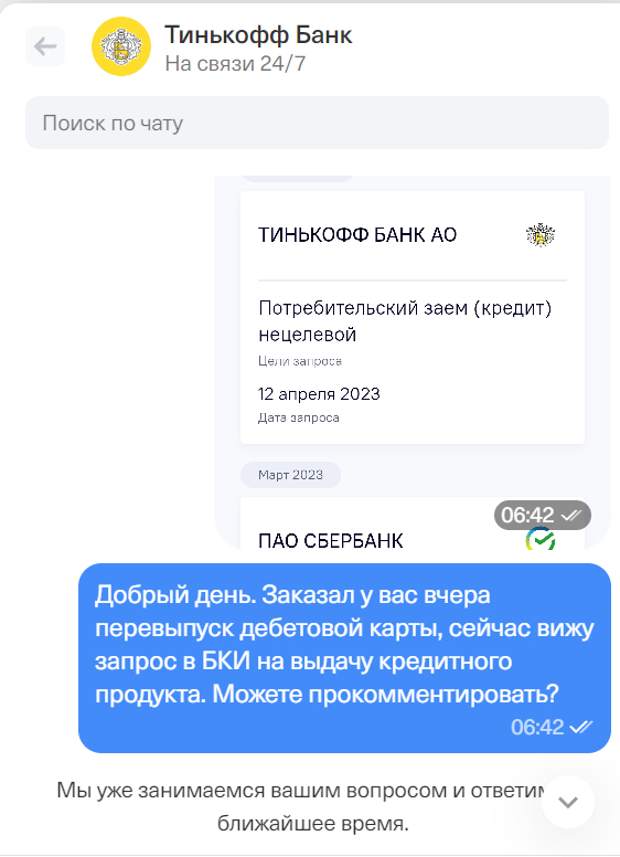 В чате также подтвердили что была оформлена заявка на кредит, но с сотрудником проведут работу. То есть уже нашелся он. Да и нет никаких проблем отследить кто совершал звонок и кто оформлял, банк обладает весьма мощными техническими мощностями) Я попросил предоставить мне отчет, когда и кем была оформлена заявка. По итогу сказали ну ок, дайте нам день, отпишемся. И забили) через 4 дня, вчера, я снова написал, потому что ну как бы ну ало. Начали отвечать что нужно еще время, что, оказывается, не такой уж и срочный приоритет у заявки) был. Я немного подохерел, если мошенническое оформление на кредит без ведома человека это не высокий приоритет, то что тогда высокий имеет) ну да ладно. И тут с утра начали лететь смски и уведомление. То одно то другое. Оказывается еще и нужно теперь отправлять заявку на исправление моей истории в БКИ.
