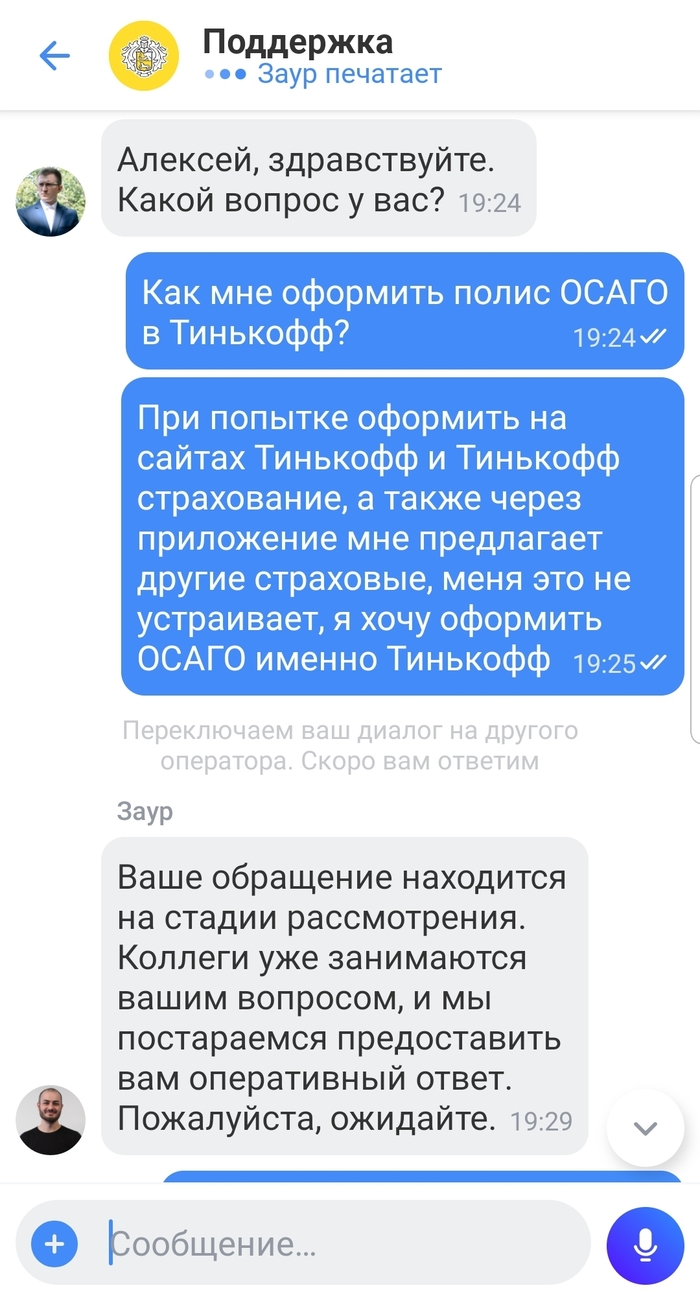 Тинькофф отказывается выдать полис ОСАГО