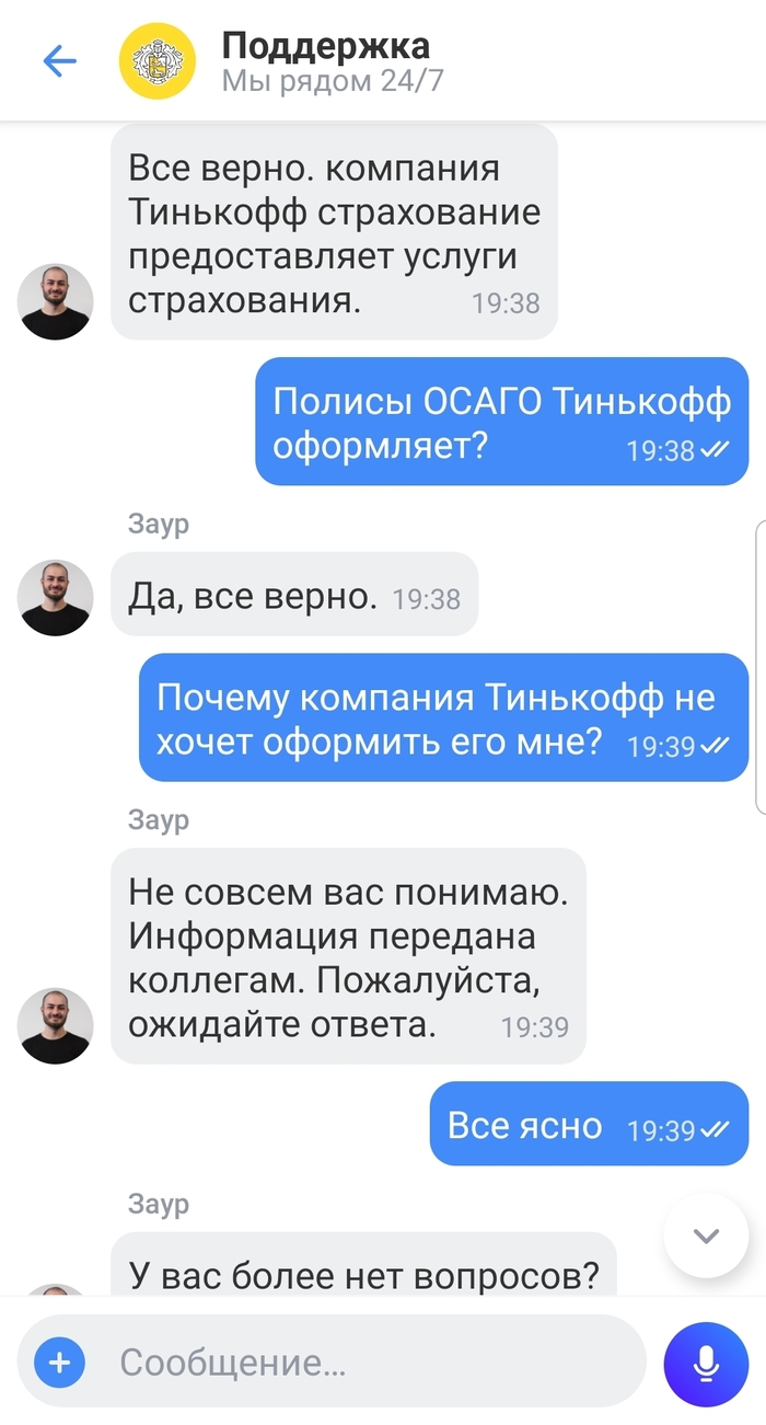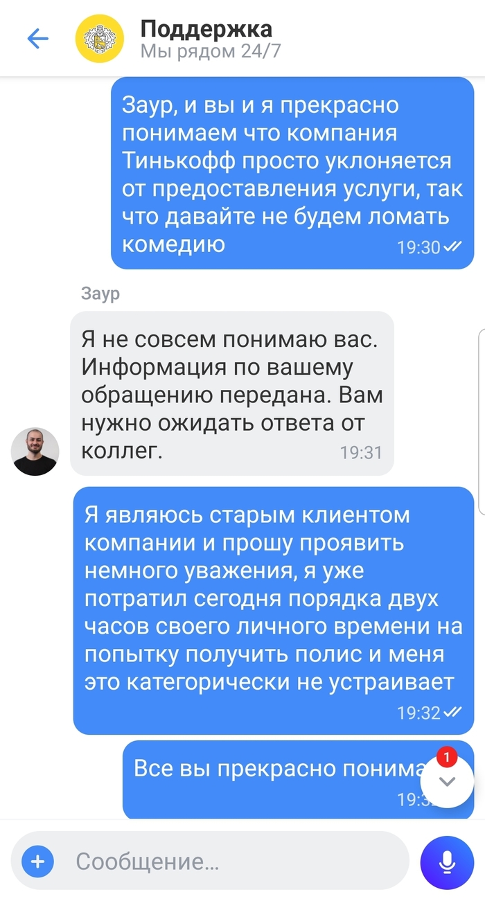 Не могу объяснить такого отношения Тинькофф к своим клиентам, похоже придется менять банк и страховую.