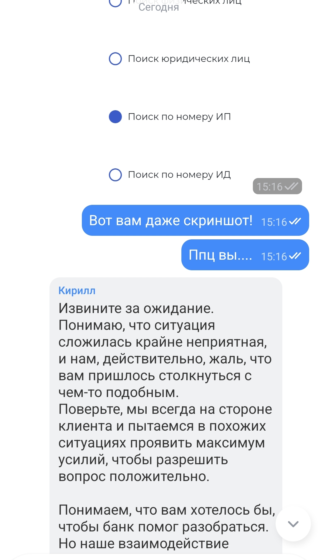 Ниже скрины из переписки