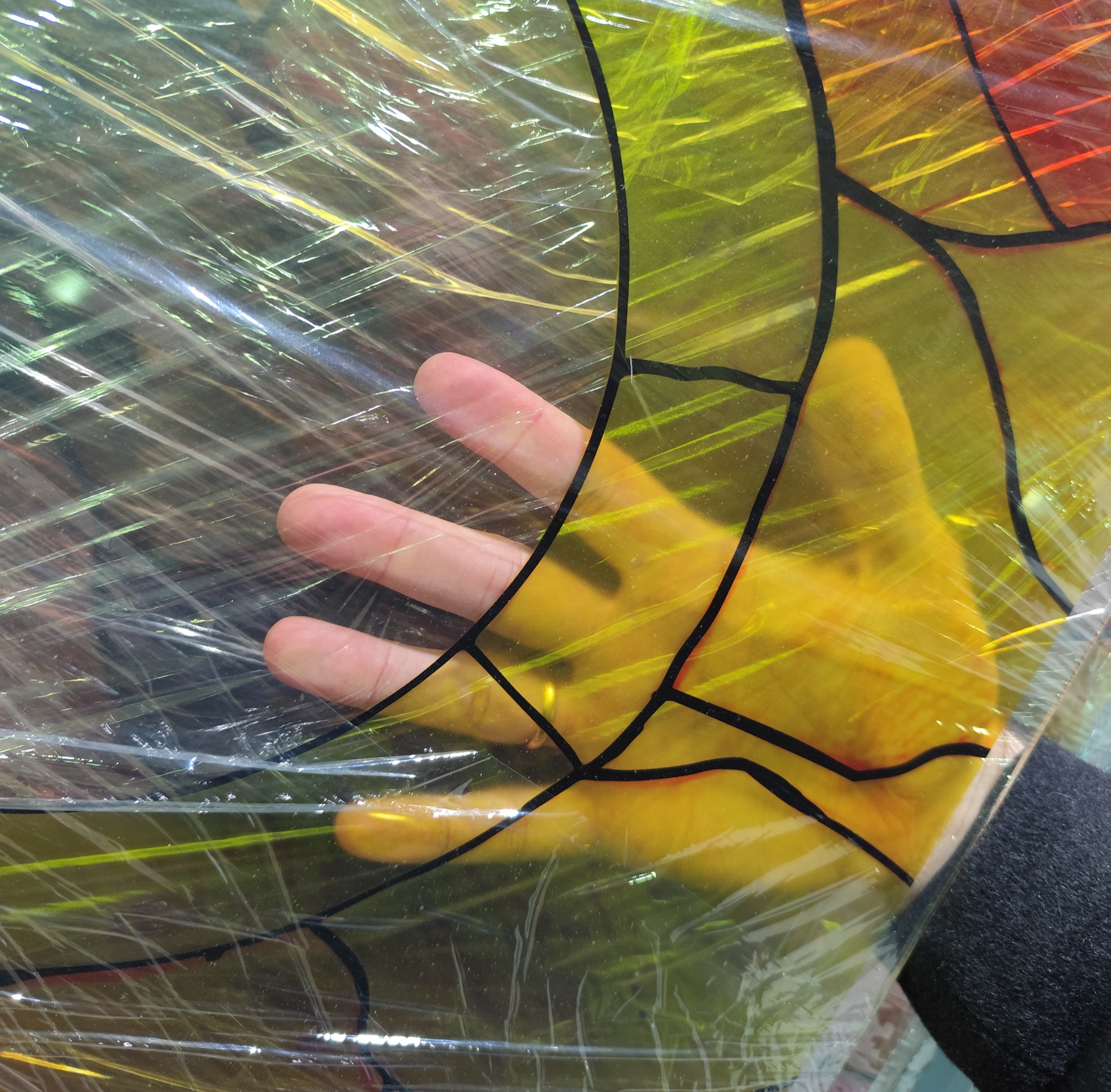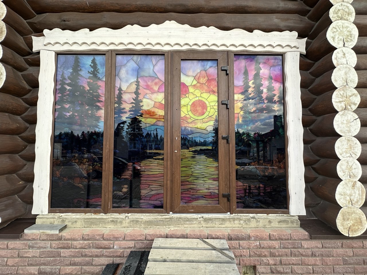 Сначала мне вспомнилось, что в нашел городе давным-давно было пару "Кулибиных", которые делали вручную подобие витражей из цветных плёночек, вырезая и склеивая "аппликацию" на стекле.