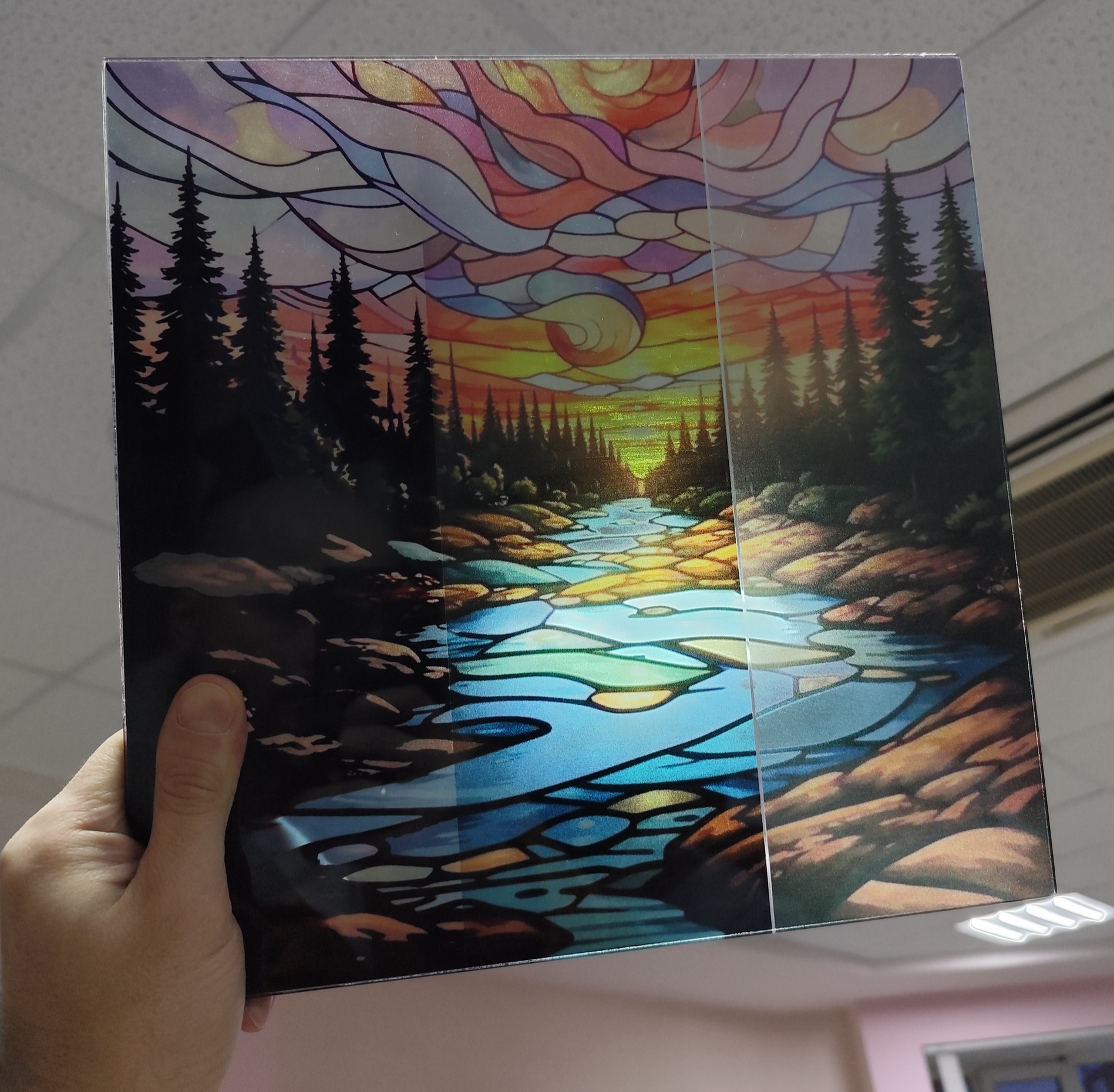 После печати всех стёкол обнаружил проблему. Т.к. солнце на картине было почти белым, при печати на стекле оно осталось прозрачным.