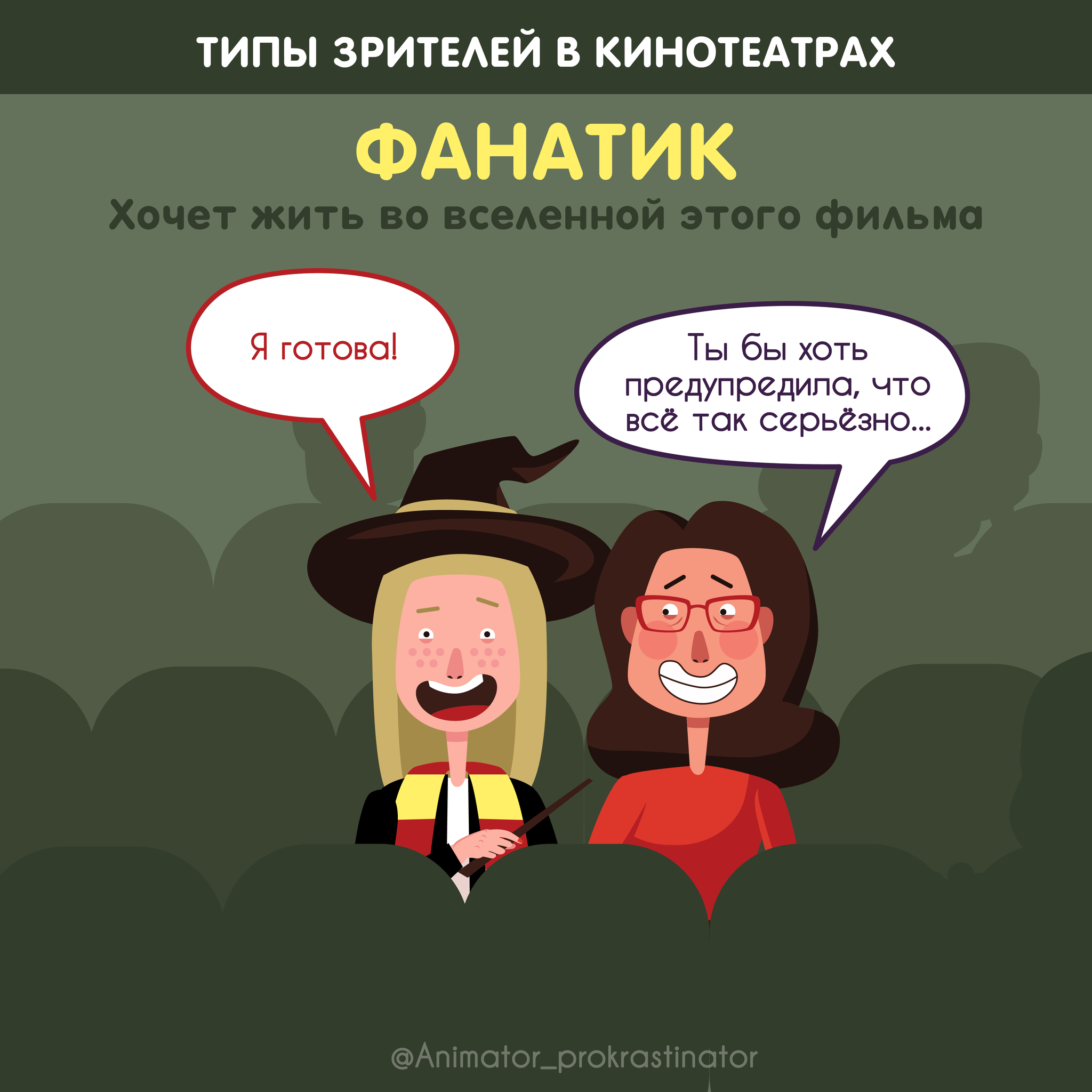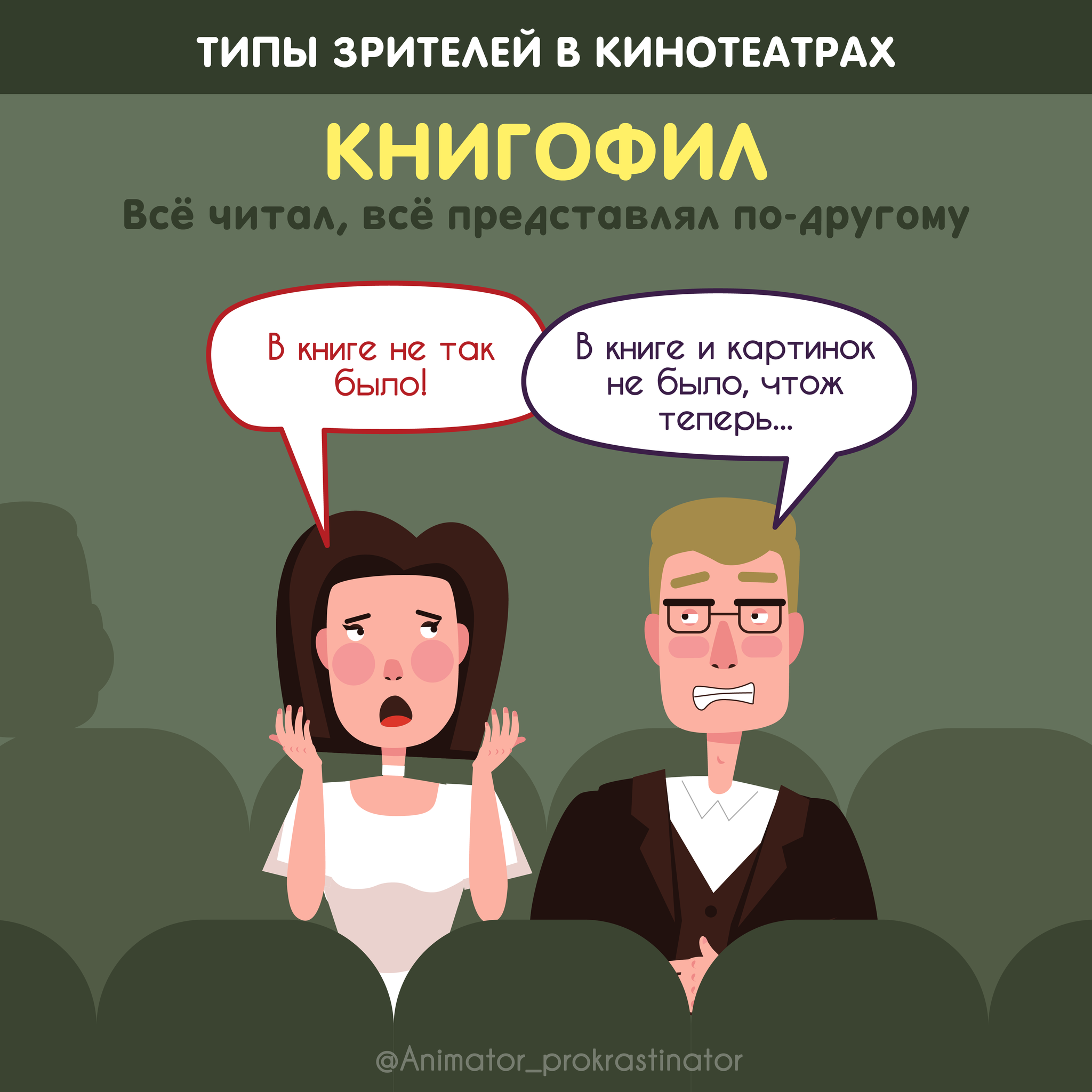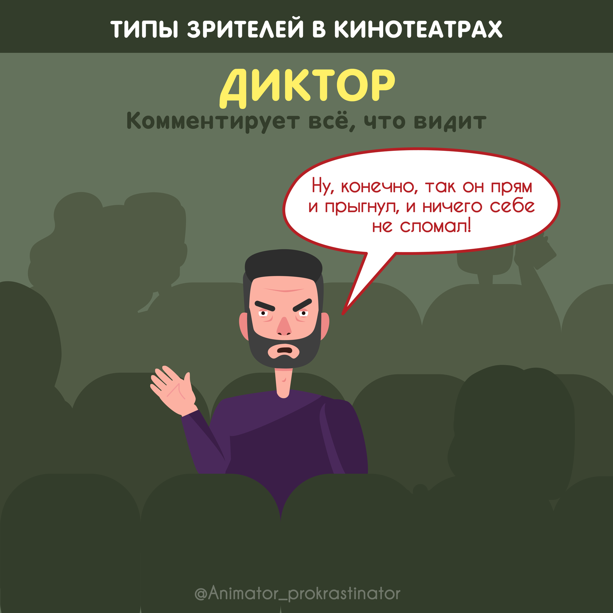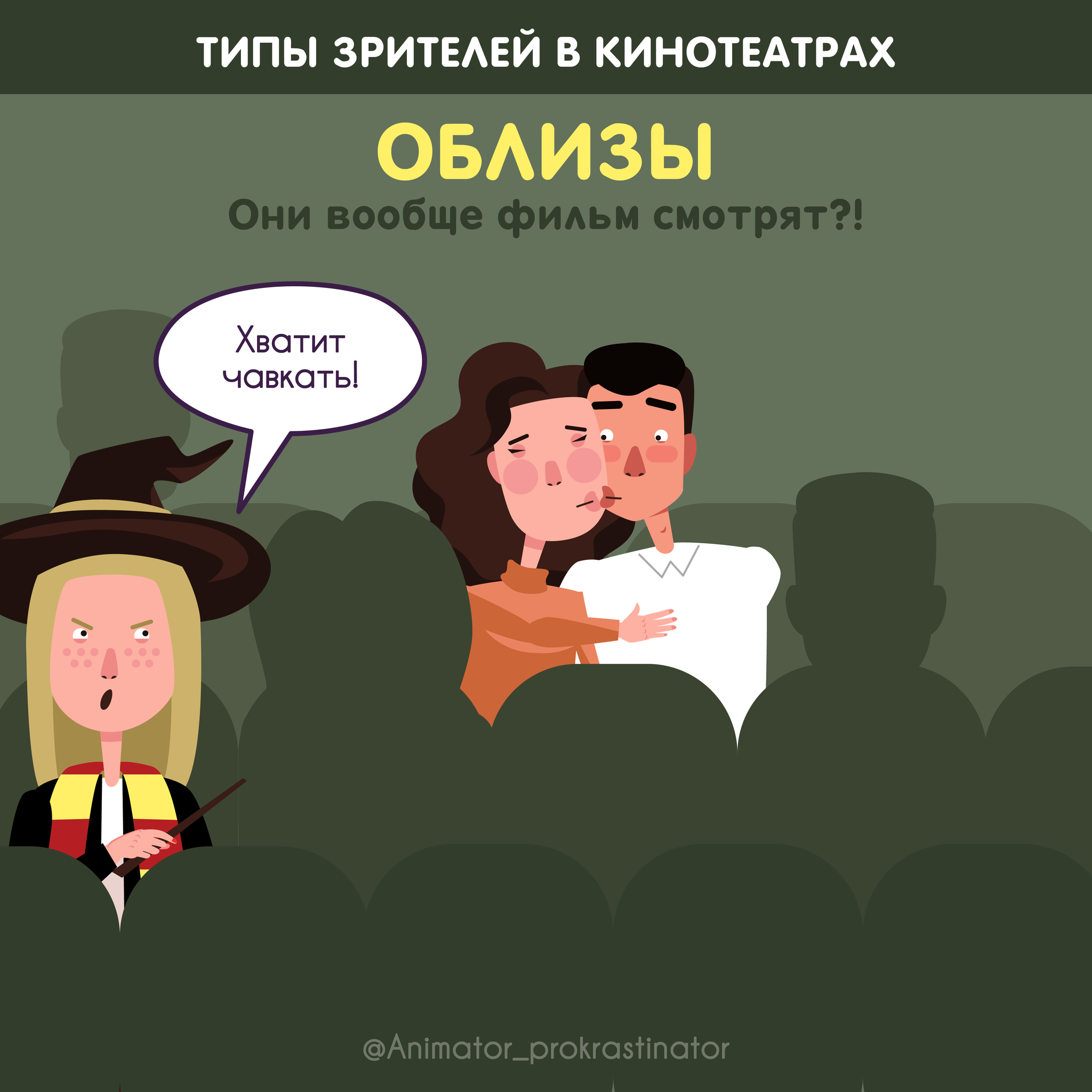 48 AnimatorProkras Типы зрителей в кинотеатрах 3 года назад [моё] Комиксы Иллюстрации Авторский комикс Кинотеатр Зрители Длиннопост 1 Ещё 0