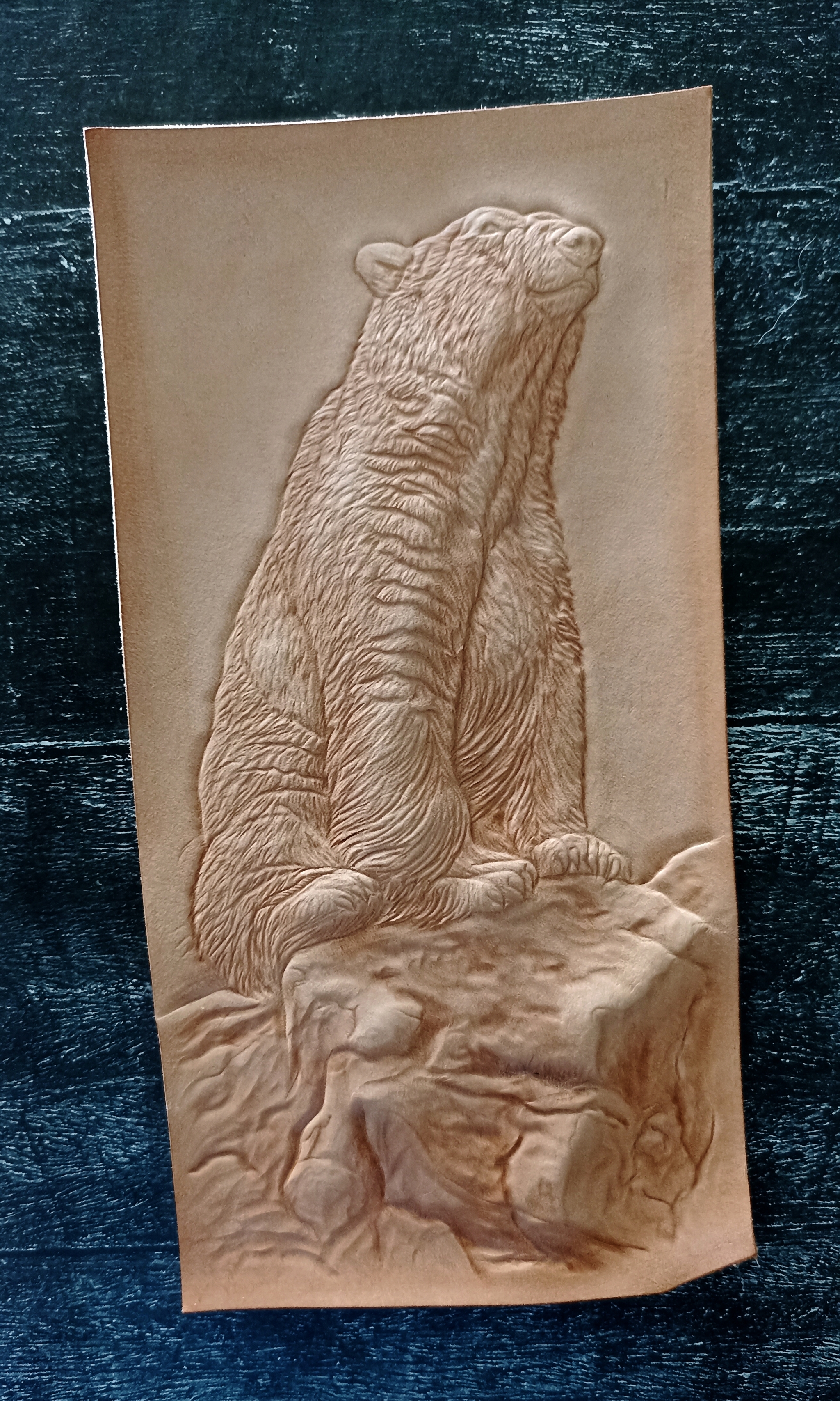 Приветствую всех, долго отсутствовал, накопилось много готовых работ, буду публиковать. Белый мишка, тиснение на большой кошелек (лонгер). Краски проникающие и акрил, роспись аэрограф, кисти. Кожа растительного дубления, производство Италия 1,6 мм.