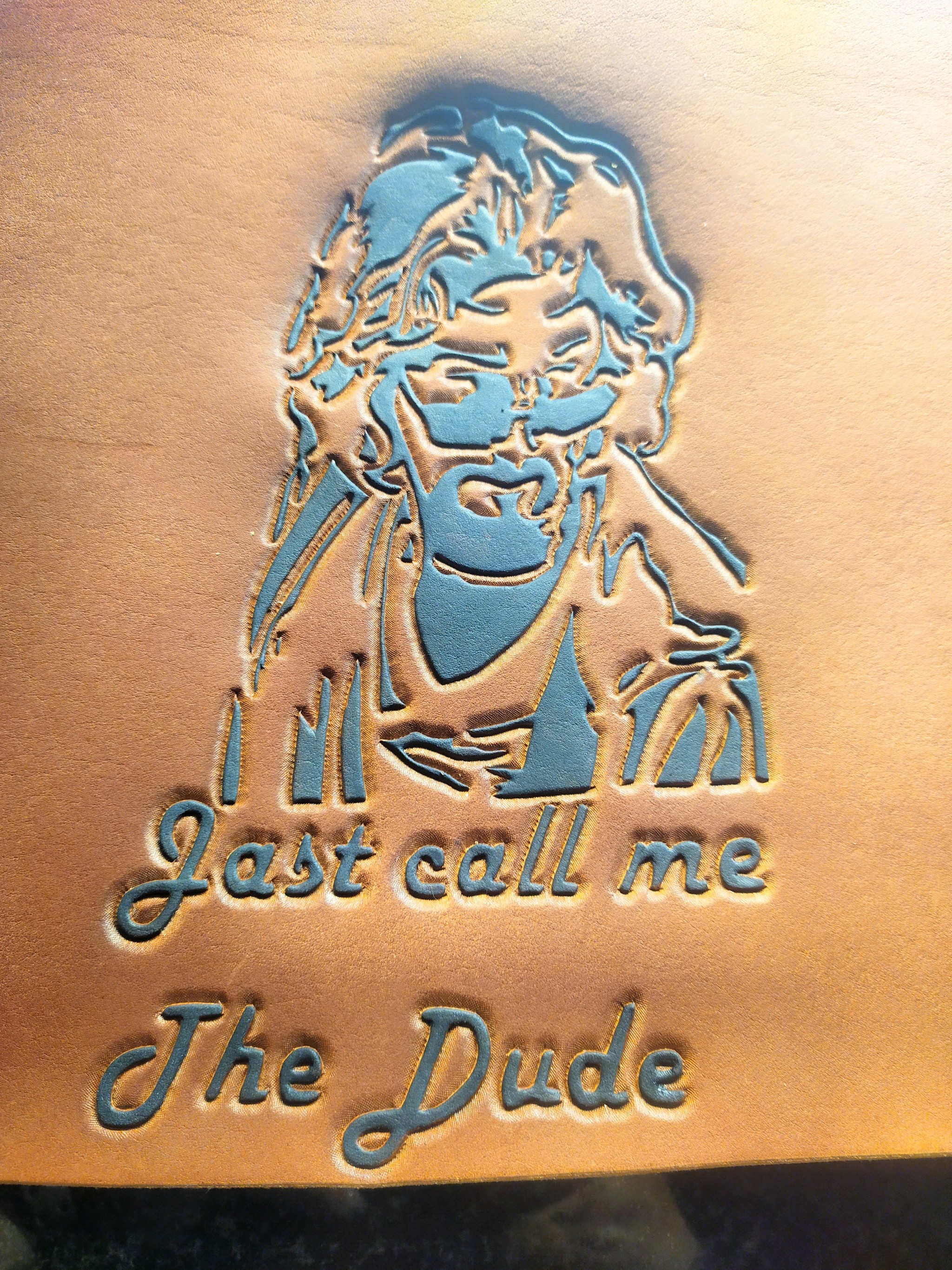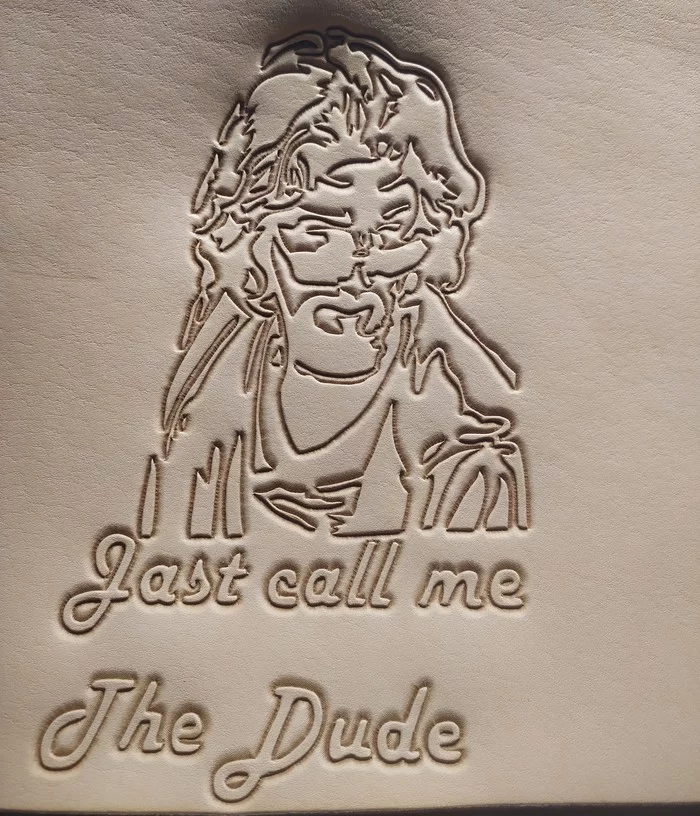 Смотрел неоднократно и много артов перелопатил, когда блокноты в подарок делал. Но даже с надписью сложно разглядеть в тиснении образ Лебовски. Не самый удачный исходник, как по мне.