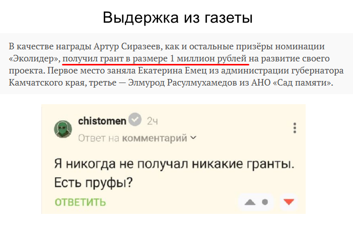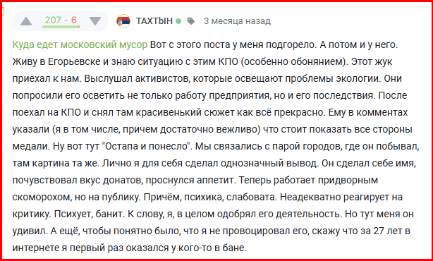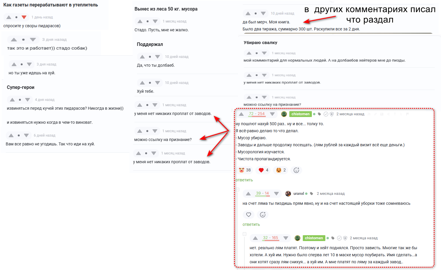 Но было уже поздно.. Классический чистоменский пост Свалка в Читинском сквере где он реально убрал помойку. (В последствии вышло даже видео) Который в обычных условиях набрал бы тысячи две-три плюсов, а то и все пять, набрал всего 600.