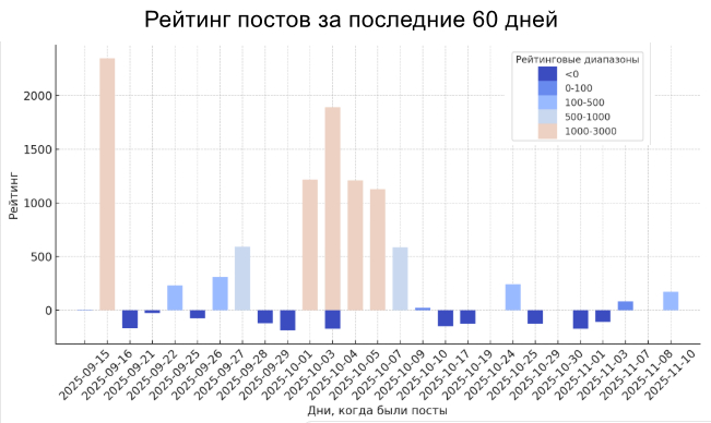 2025 год начался, несколько слабее предыдущих. Были вопросы по Анапе, (Чистомен долго собирался) хотя тема неплохо в итоге выстрелила и его участие было освещено в СМИ . Дальше деятельность несколько замедлилась. Постов с уборкой стало меньше, голого пиара значительно больше, постановочные фото стали заметнее. Это заметно по рейтингам.