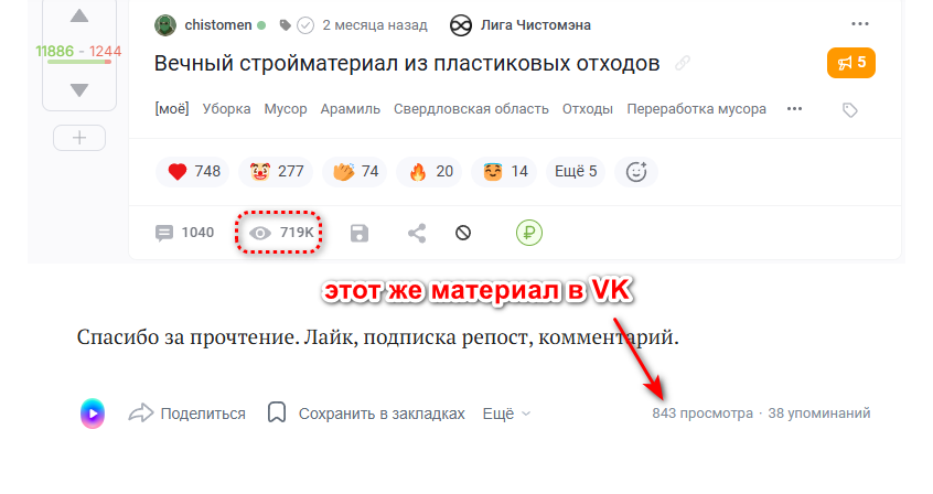 Лучше всего ситуацию иллюстрирует данное сравнение сколько людей прочитало.719К vs 0,85К