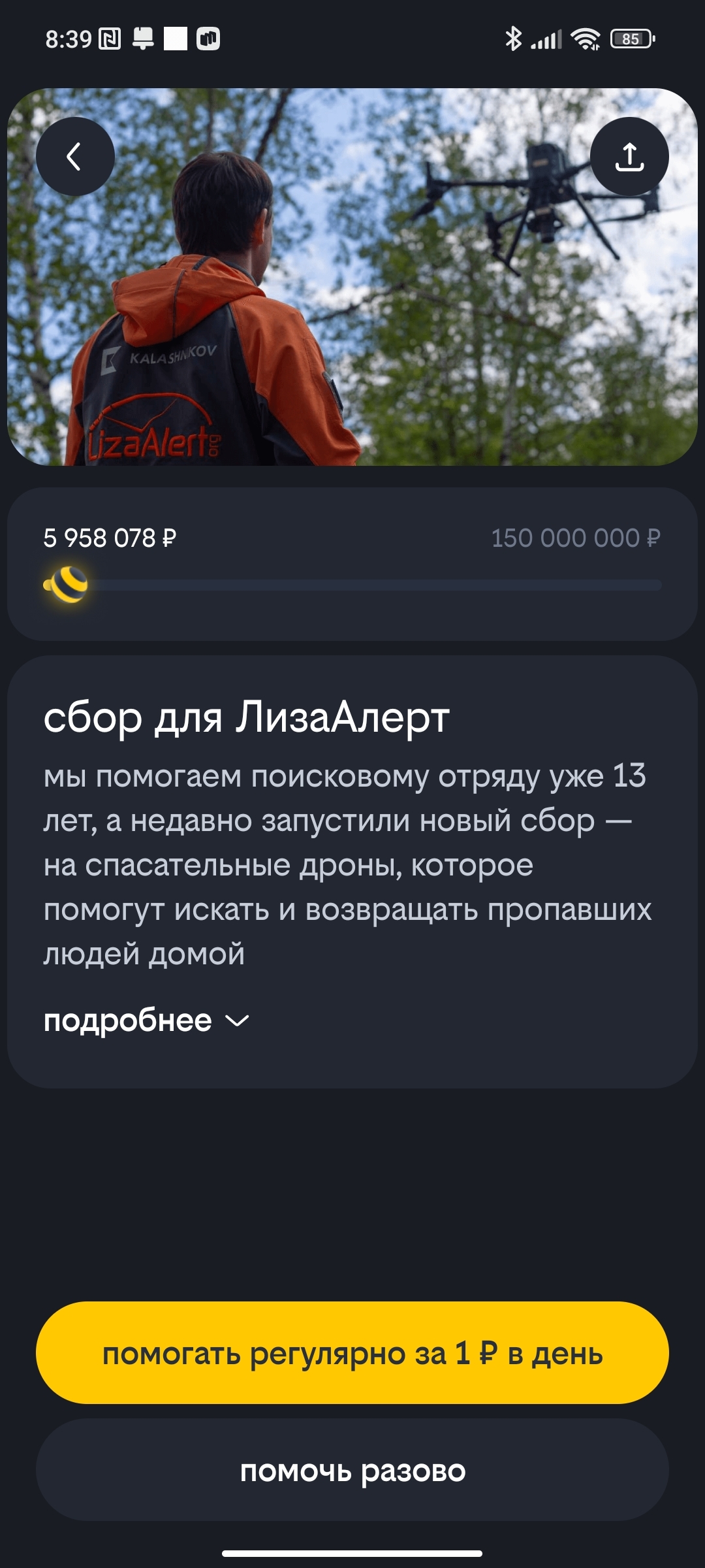 Ну так денег то лиза алерт не получает, они принципиально писали никогда никаких денег ни волонтерам ни админам на на содержание брать не будем. Хотите помочь спросите, что нужно и несите рации, батарейки дроны, предоплаченные топливные карты и т д