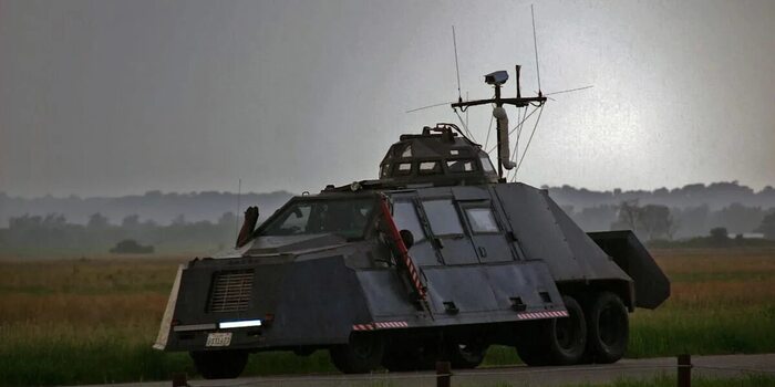 На данный момент машина потерпела огромные изменения. Такие как: передняя панель стала цельным листом металла. Так же, передняя панель теперь опускается так же как и две боковые, при помощи гидравлики. По бортам были добавлены два гидравлических шипа, которые при развертывании вонзались в землю на приличную глубину, это помогало машине при попадании в торнадо удерживать равновесие (дабы не перевернуться). На задней части установлена так же панель, но откидная. Данная панель была поставлена на время, так как позже была заменена на еще два гидравлических шипа сзади.