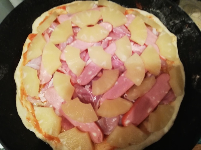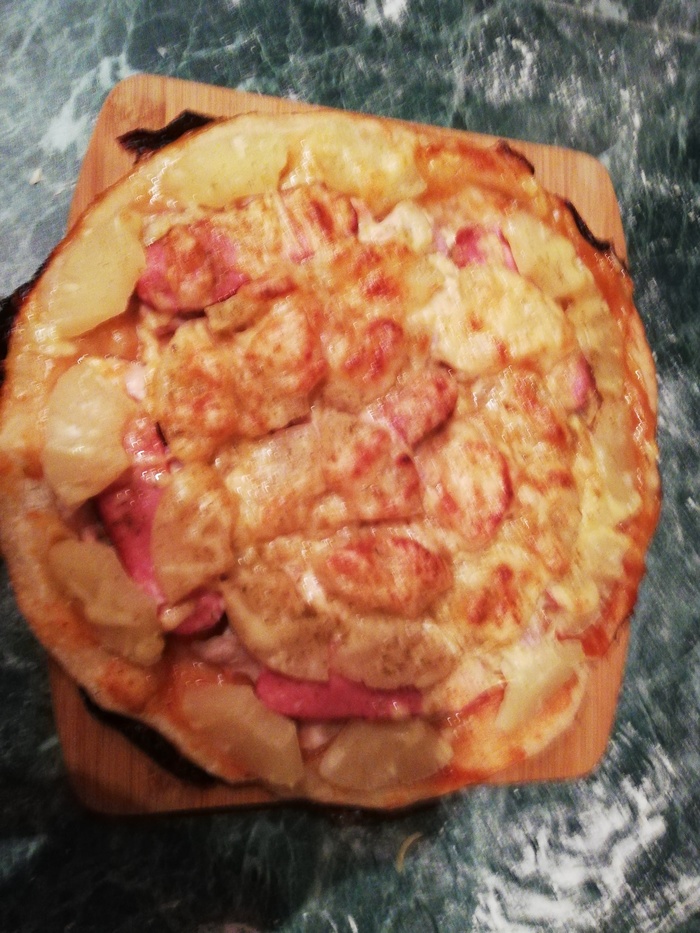 Получилось весьма вкусно, хотя и чуток не дотягивает до гавайской пиццы, что обычно заказываю.