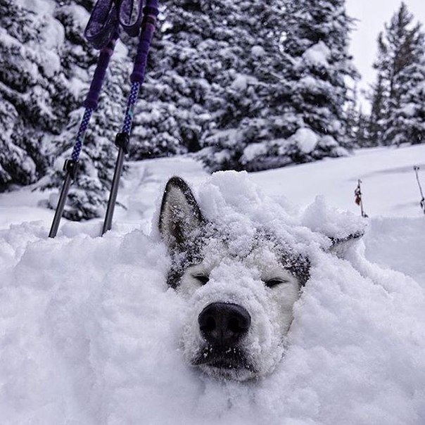 93 ElKotio То чувство, когда дождался первого снега) 9 лет назад Хаски Собака Снег Сугроб Спрятался
