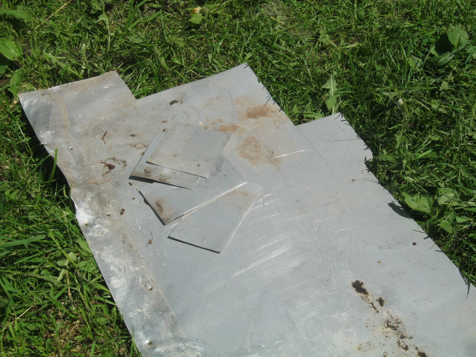 Лист отрихтовал, разметил, вырезал заготовки ножницами по металлу. Жесткой щеткой с мылом и водой отмыл и высушил заготовки.