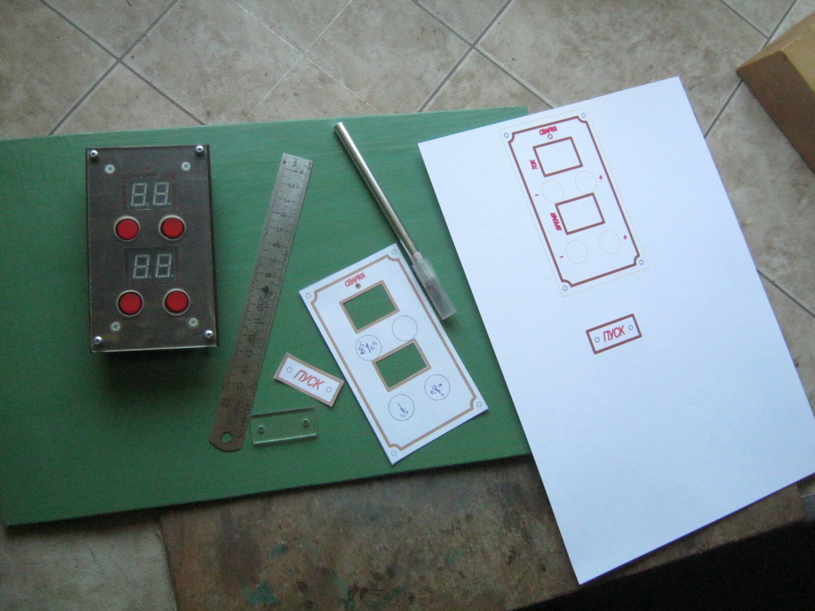 Фото 6. Самая сложная панель, для модуля управления. Под прозрачной будет декоративный бумажный слой с пояснительными надписями.