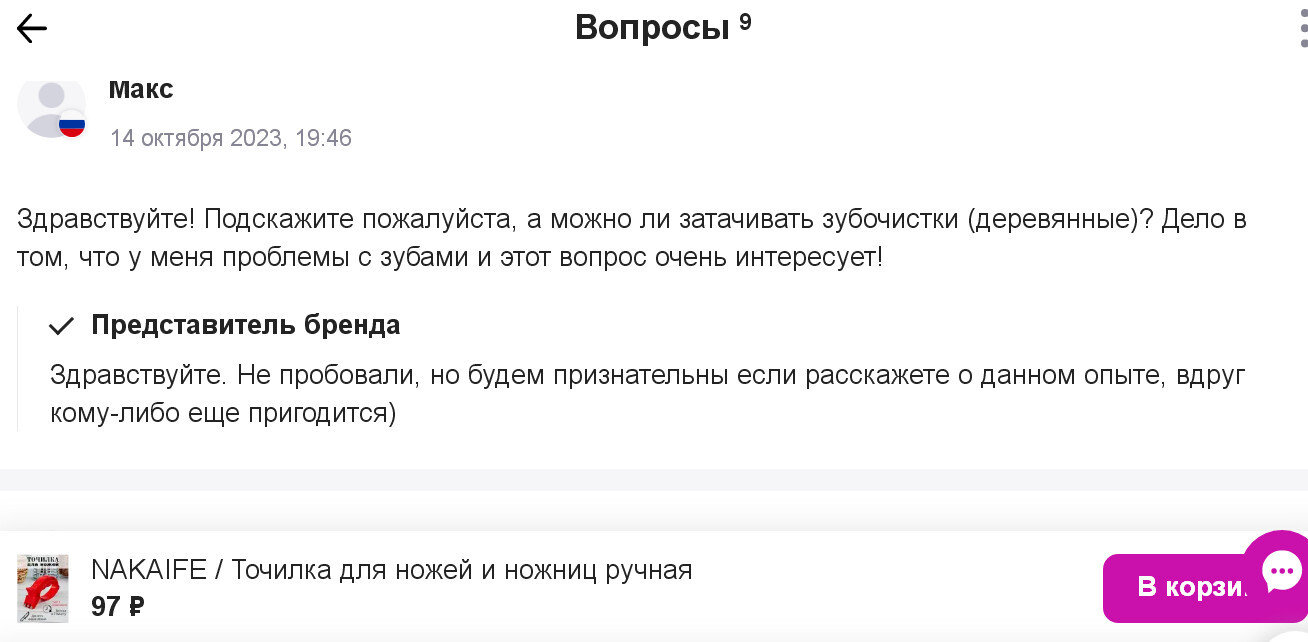Довелось мне давеча покупать точилку для ножа на всеми любимом и обожаемом Wildberries. Спору нет, почитав отзывы о площадке и посмотрев их количество, ... И немного прихуев от увиденного, таки я решился! Не, ну а чё?, цена решает! - В крайнем случае попаду на двести рублей. Сказано - сделано!