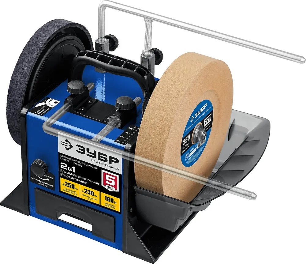 Бывают, но стоят они конских абсолютно денег. Там и абразив медленно вращается и водой пропитывается в процессе. Какой-нибудь tormek t4 с набором держателей обойдется в 100тыс.