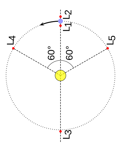 Итак. В центре Солнце. Если желтая точка в самом верху - Юпитер, то зеленая точка, вращающаяся вокруг Солнца-?