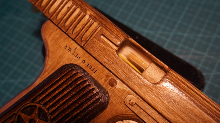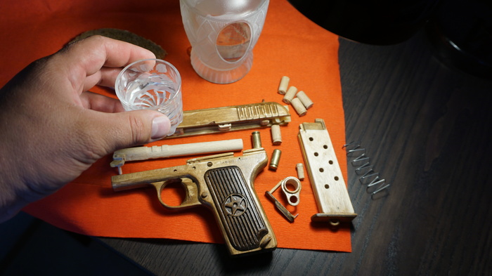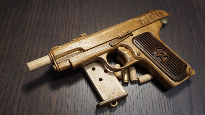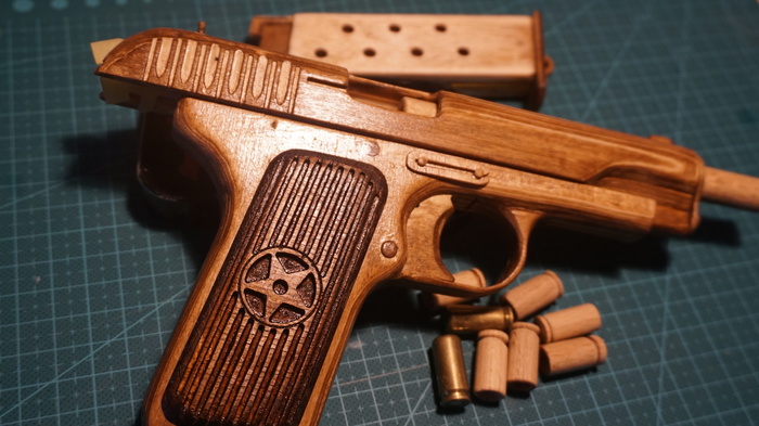 Мое хобби это "пистолетики" из дерева, стреляющие канцелярскими резинками. Похожие на оригинал, со сложной механикой и большим количеством частей. Сегодня я хочу представить экземпляр своей коллекции, такой же символ войны как ППШ и Т-34, пистолет Токарева, ТТ-33 из дерева.
