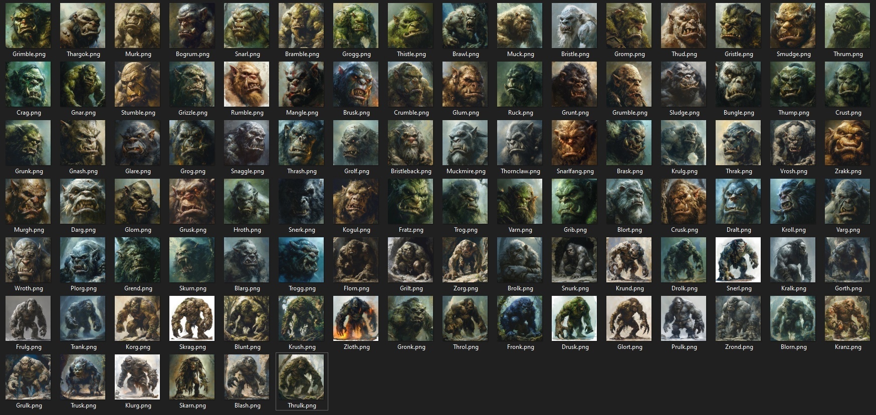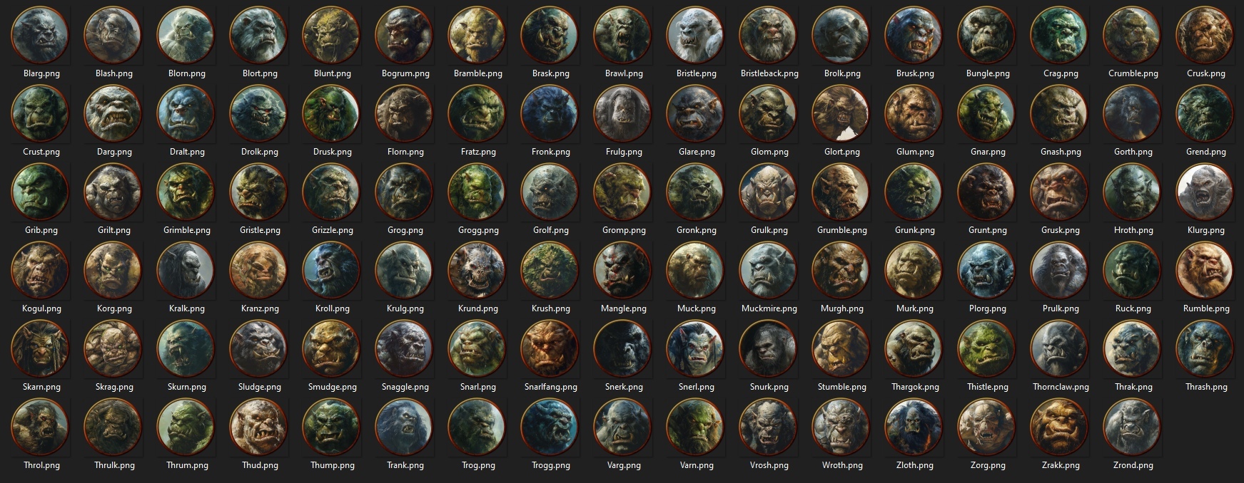 Куча картинок, сгенерированных в Midjourney по уникальным промтам из ChatGPT. Мне на играх мало визуала. Особенно бесят стоковые изображения, а ещё больше - одинаковые у монстров. Будто они просто болванчики. Эти паки нужны для решения этого вопроса.