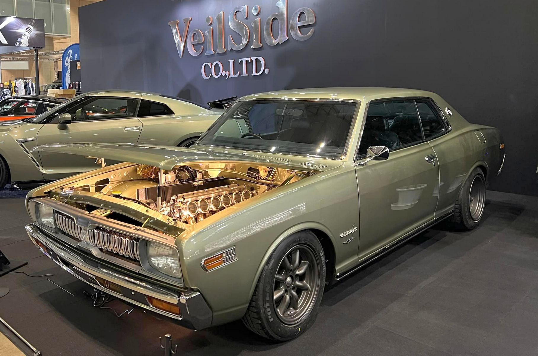 Nissan Cedric семидесятых годов — не самая популярная машина в японской автотусовке. Но для владельца компании Veilside Йокомаку Хиронао она имеет сентиментальное значение: точно такая же была у его отца. Поэтому бизнесмен решил построить рестомод. Двухдверный кузов не только привели в идеальное состояние, но и незаметно расширили его — для этого изготовили слегка раздутые крылья из углепластика взамен штатных стальных деталей. Под капотом осталась родная рядная «шестёрка» L28, но её объём нарастили до 3,2 литров при помоши длинноходного коленвала OS Giken и поршней увеличенного до 89 мм диаметра. Стандартную головку заменили аналогичной новодельной от фирмы JMC: у неё та же конструкция ГРМ с двумя клапанами на цилиндр, но более выгодная форма каналов. Вместо карбюратора установлен шестидроссельный впрыск. Коробка передач современная, шестиступенчатая, от Nissan Silvia S15.