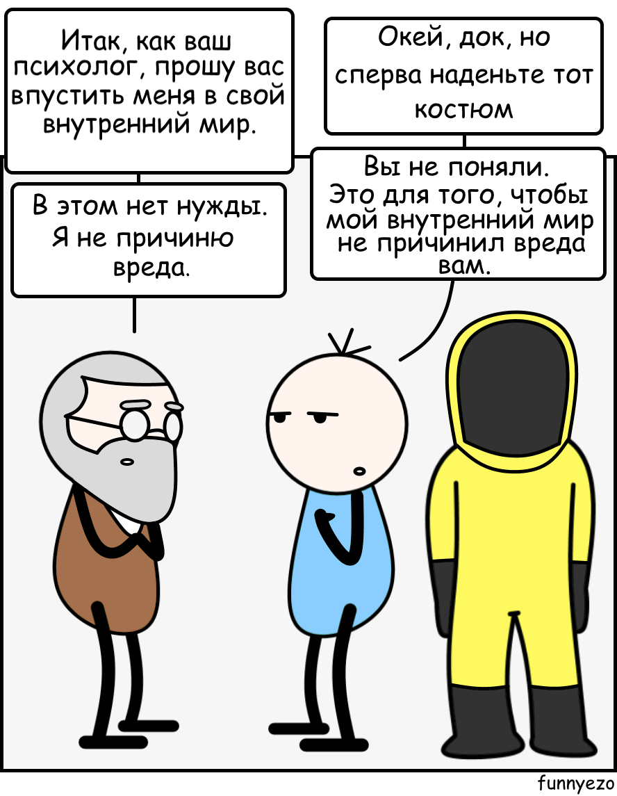 310 Funnyezo Токсичный человек 7 лет назад Автор: https://vk.com/funnyezo [моё] Юмор Комиксы Funnyezo Внутренний мир