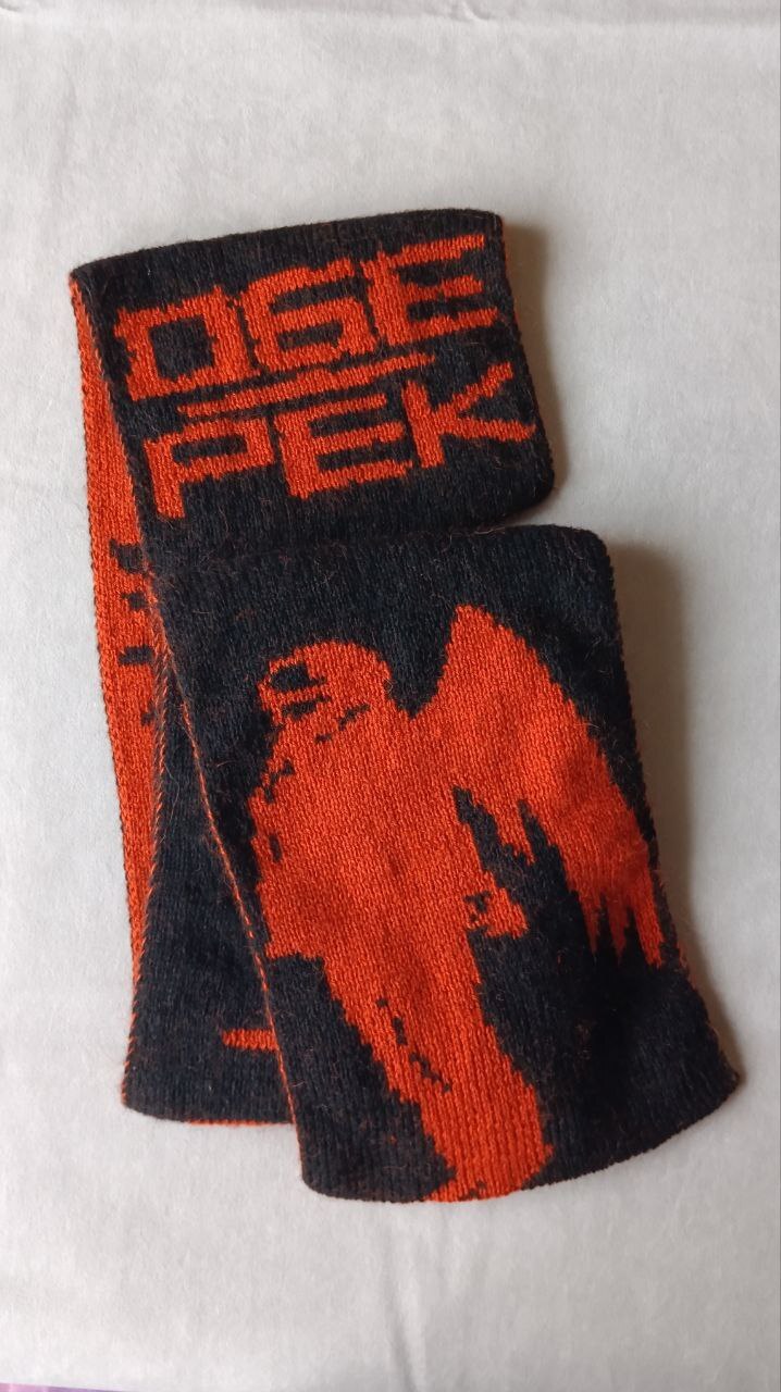 Это уже второй шарф для группы Обе рек, в честь выхода нового альбома, который называется (Внезапно!) "Алый край неба"