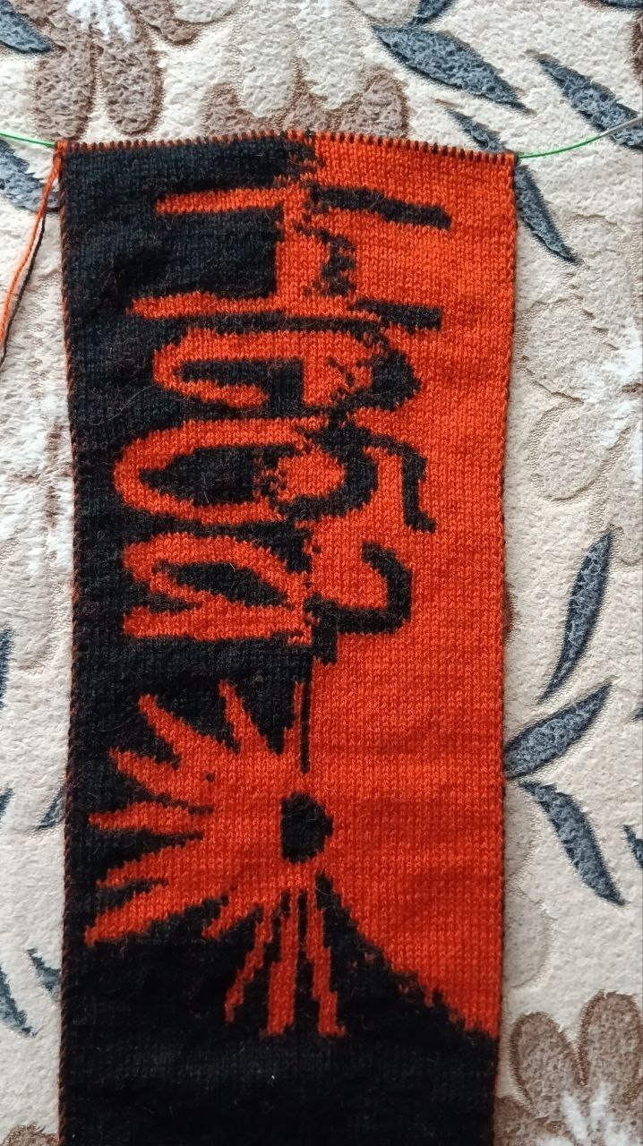 Схема составлялась больше по приколу, так как я не очень люблю текст вязать, изнанка не читаема, но, на удивление, меня попросили реализовать этот шарфик.