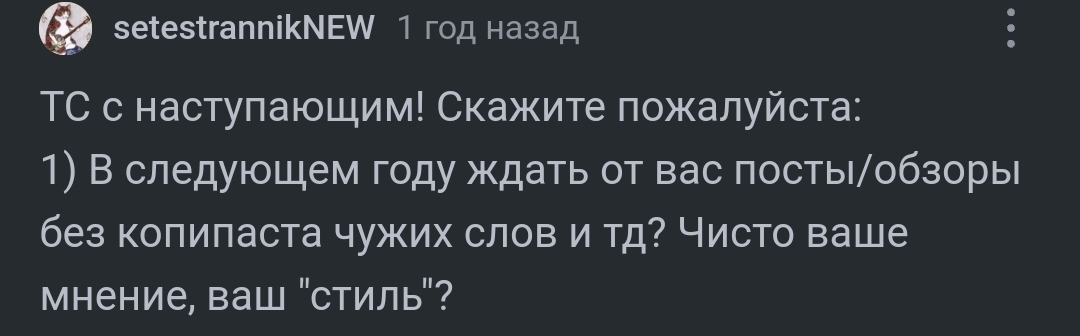 Но знаете, я ему во многом благодарен. Нет, это не стокгольмский синдром. Просто за прошедшее время бесконечный поток его придирок и лживых обвинений мотивировал меня прикладывать максимум физических, творческих, моральных и финансовых усилий в процессе подготовки обзоров.