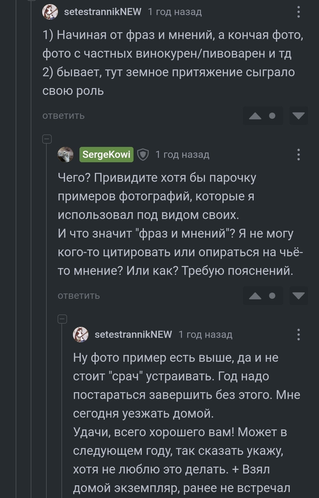 За 13,5 месяцев этот манипулятор так и не сповадился привести примеры и источники копирования. Больше года он мурыжит меня и других людей, пачкая коричневым цветом своих комментариев почти все мои посты. Как видно из его последних словесных отрыжек, суть претензий осталась та же, только поменялась форма подачи, да и обвинительных пунктов стало в разы больше.