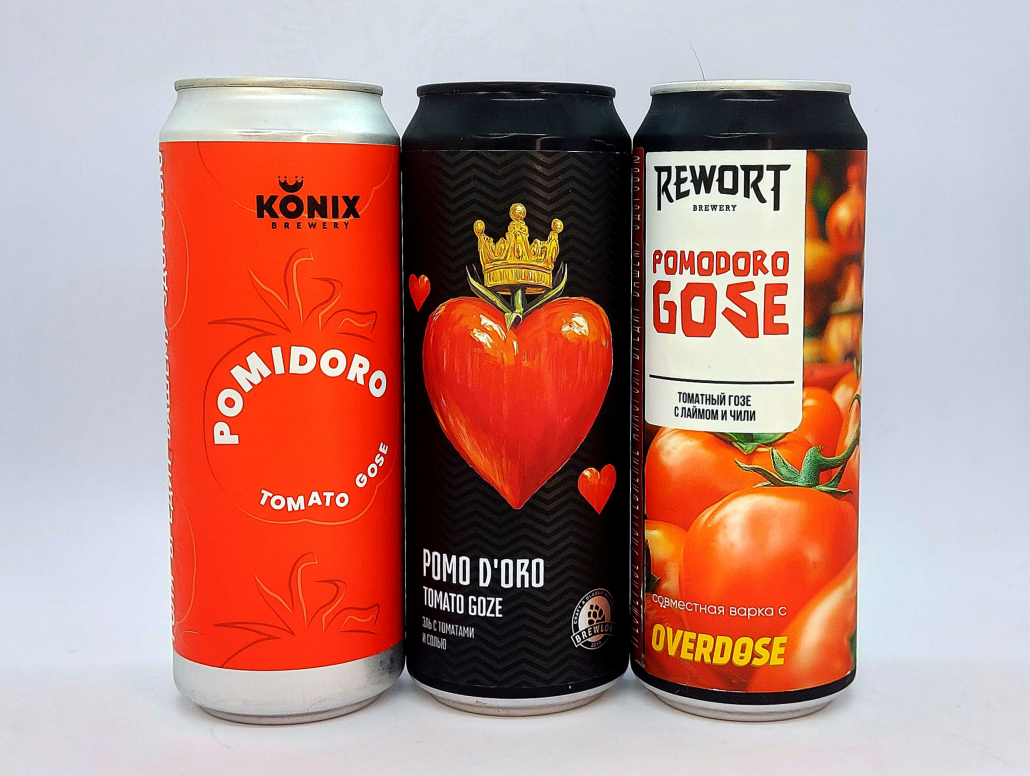 Есть такая расхожая фраза "у дураков мысли сходятся". Ни в коем случае не вношу в неё никакого критического или оскорбительного смысла. Просто удивительно, что в узкий временной промежуток в магазинах появились три томатных гозе, которые получили названия, связанные со словом "помидор" на итальянском языке.
