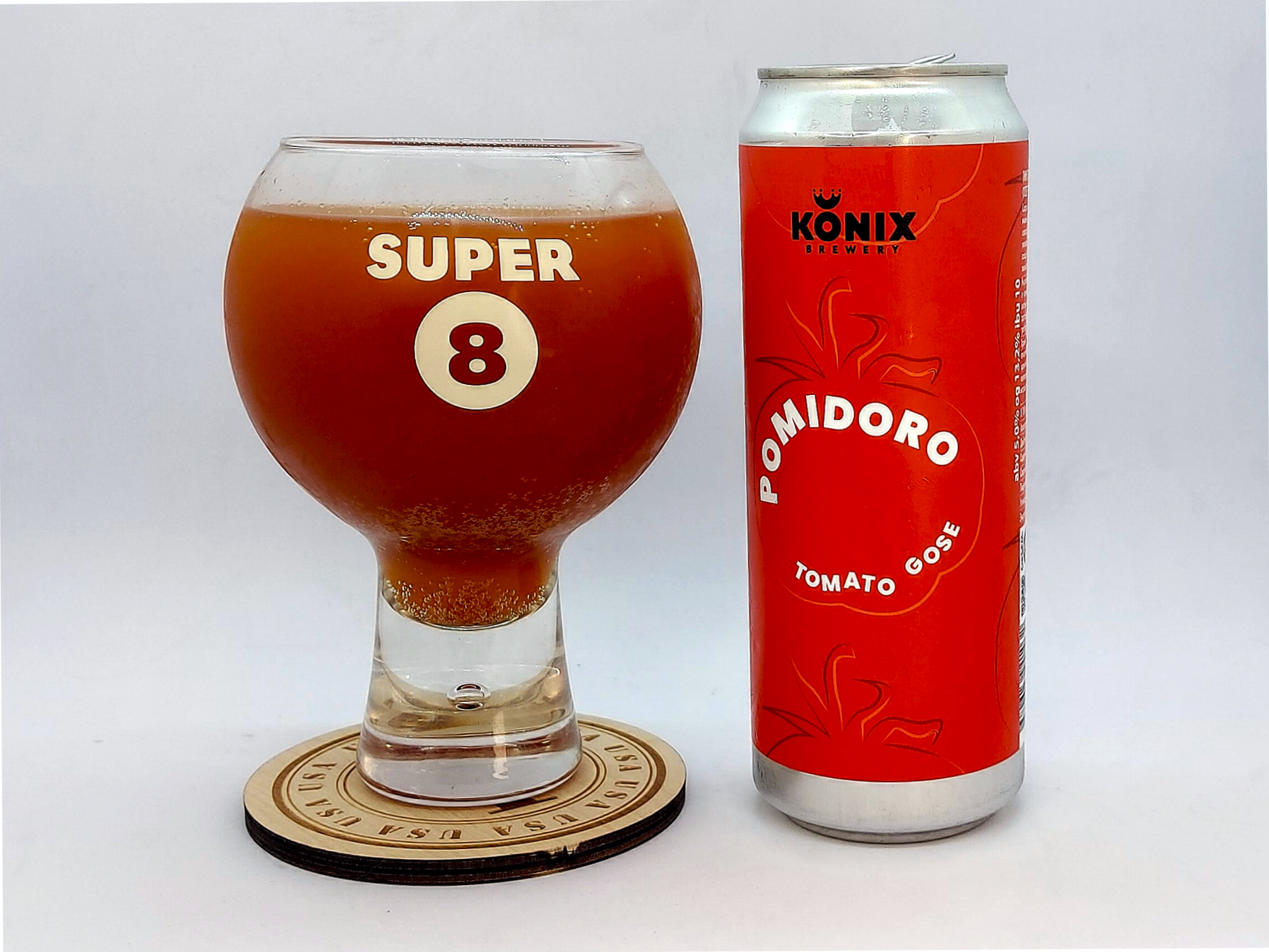 "Pomidoro — лёгкий томатный гозе, с добавлением кайенского перца, копчёной паприки, сока лимона. Аромат маринованных томатов с лёгкой копчёнкой. Питкий, освещающий с лёгкой остринкой. Отличный томатный гозе в его классическом виде."