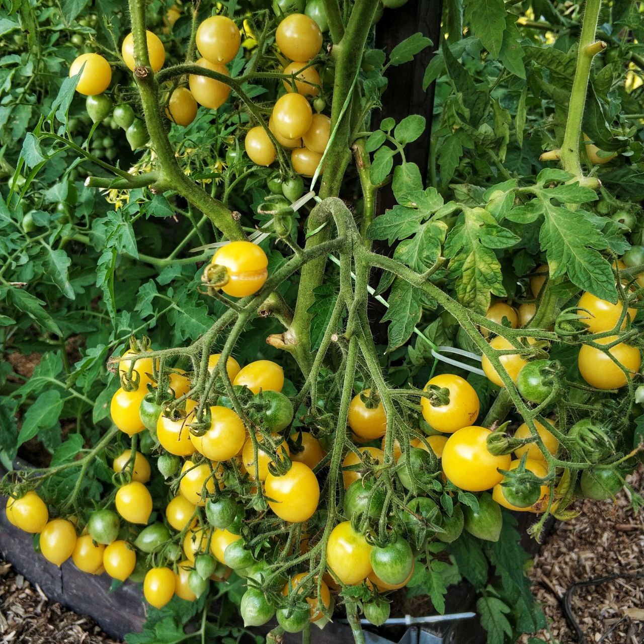 Сумасшедшие вишни Барри - с этого сорта и началась история с разными томатами. Увидела его в сториз у кого-то и влюбилась. Потрясающие кисти - целые букеты - а потом гроздья ягод. Светло-желтые, слегка вытянутые и с острым носиком. Вкус замечательный - сладкий, нежный, фруктовый, с лёгкой кислинкой. Очень нарядные и в цветении, и в плодоношении.