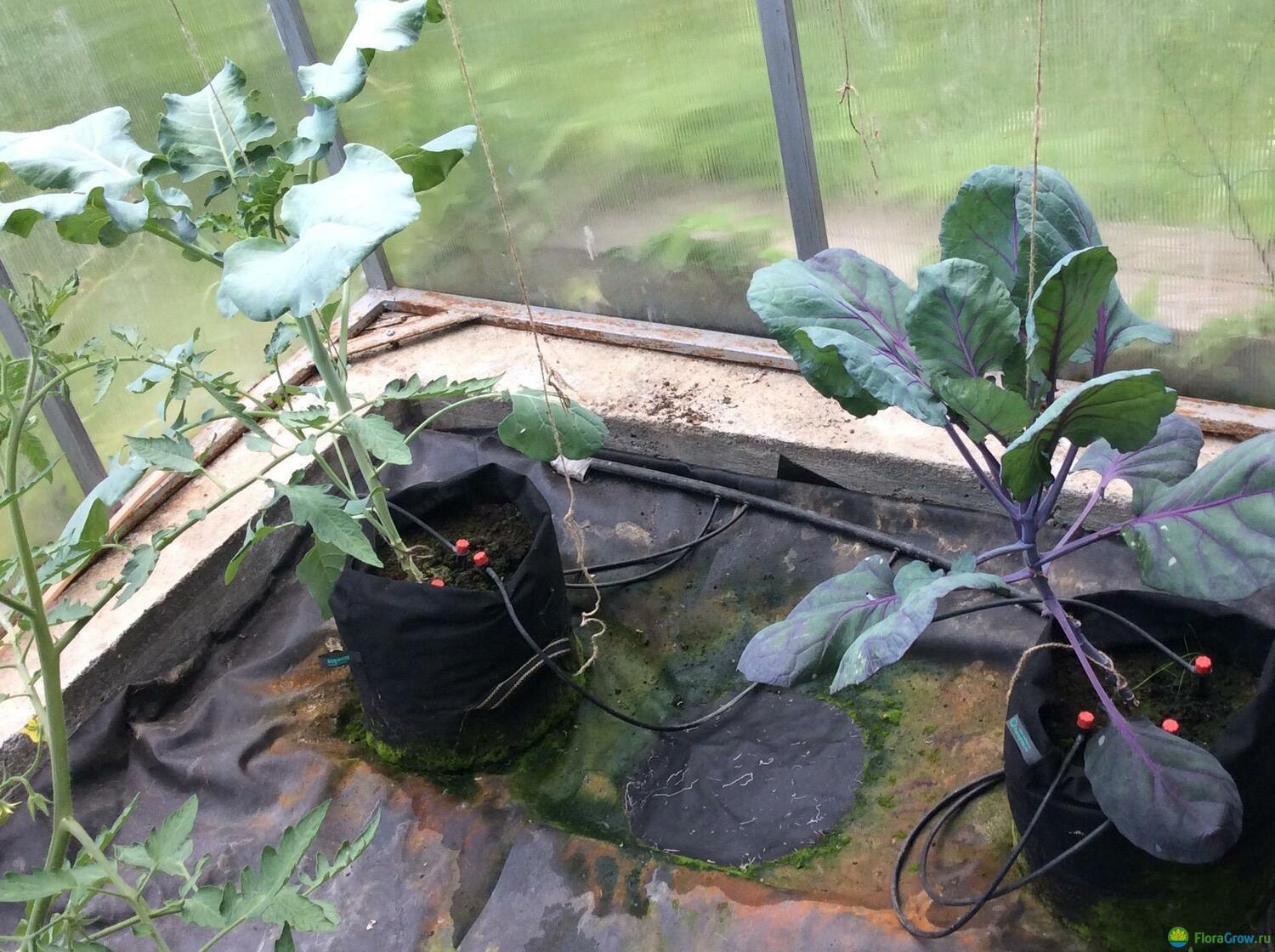 Убрал капусту которую грызет мошка. Просто достал в мешке и вынес из теплицы. Капельницы перенес на другие мешки.