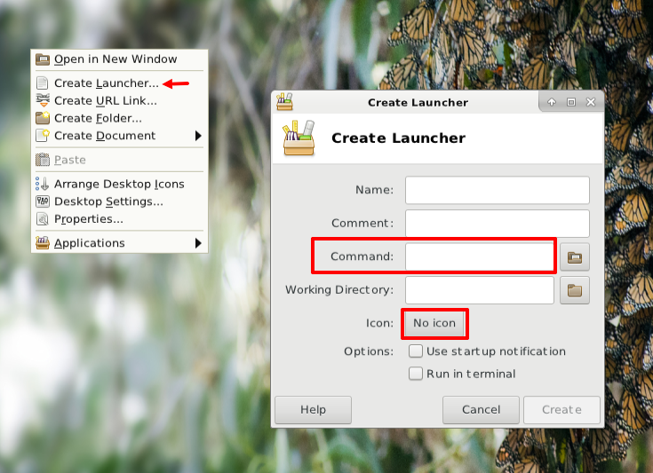 Чтож, тычем правой кнопкой на рабочий стол, выбираем Create Launcher