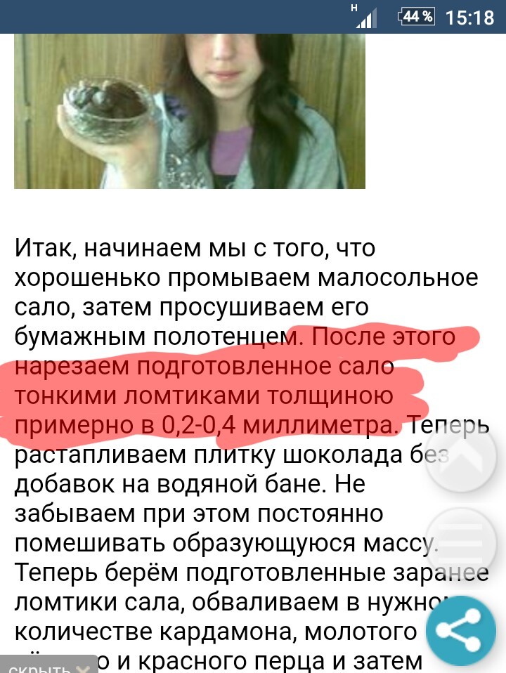 Это был рецепт "сало в шоколаде", и один фрагмент в рецепте меня позабавил..