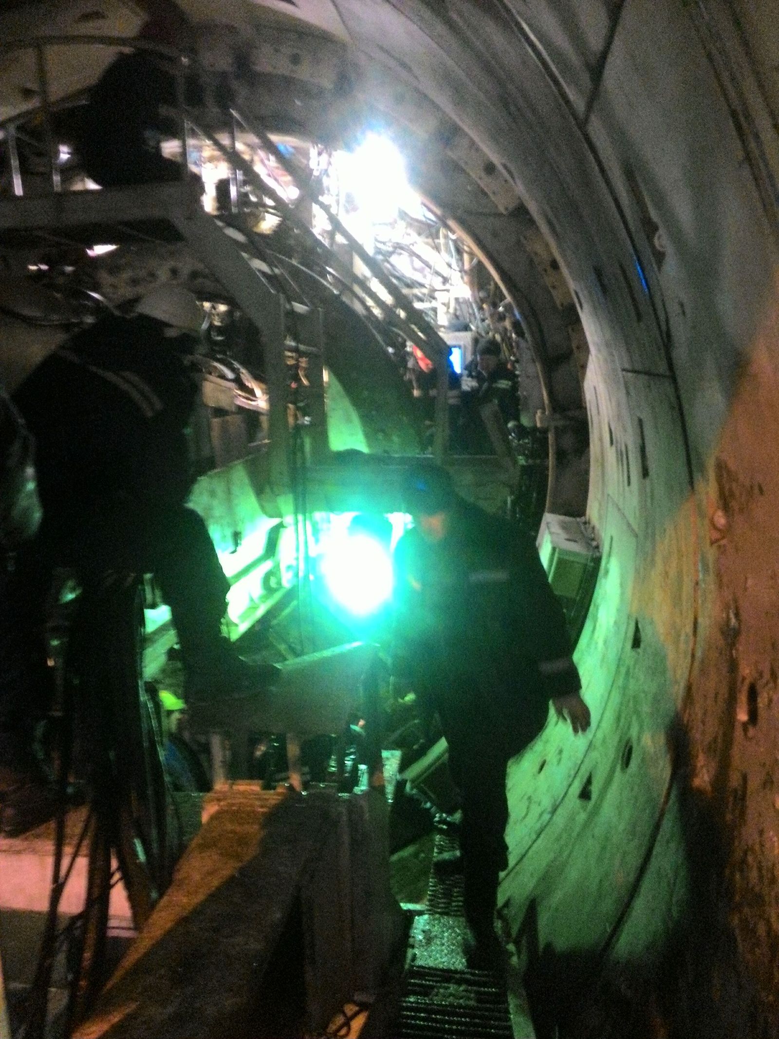 Вид изнутри. В зазоре видно домкраты, опирающиеся на кольцо, так щит и проходит дальше вперёд.