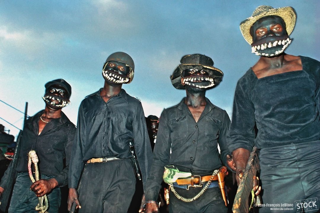 Тонтон-макуты в устрашающих масках (судя по всему идут на какое-то светское мероприятие)