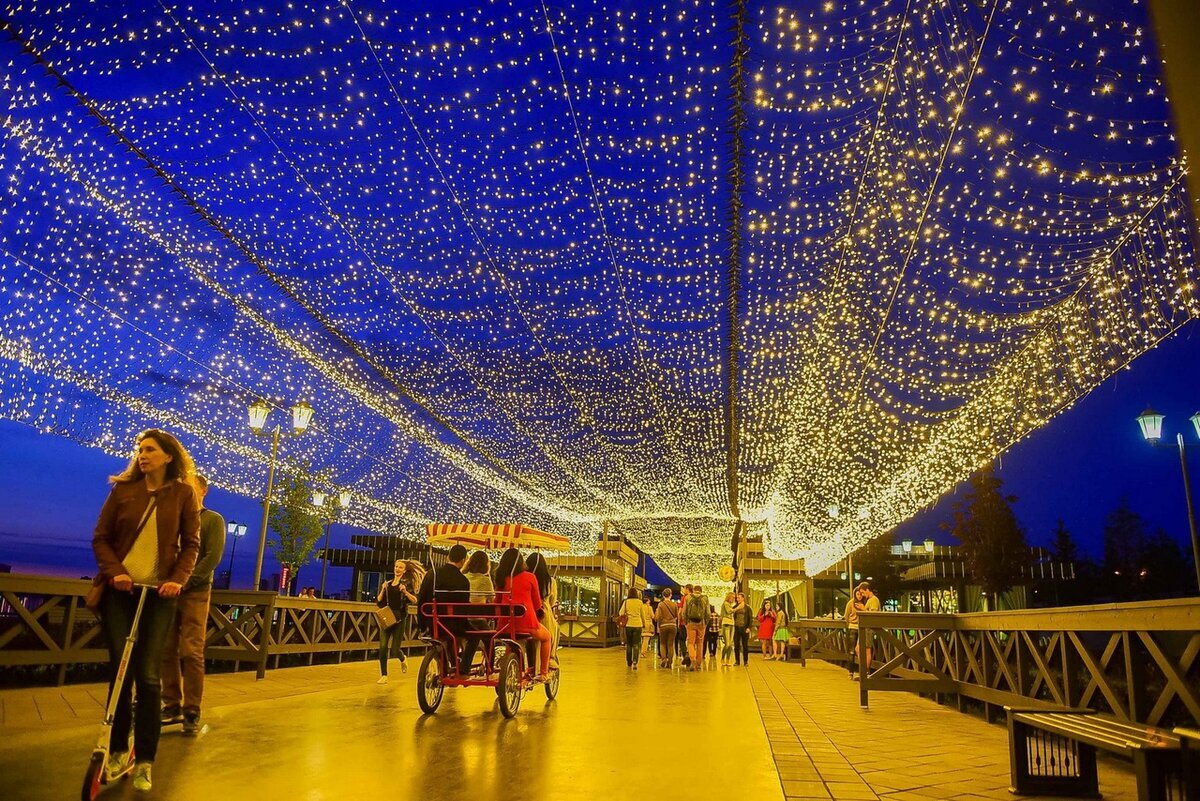 Развлекательный комплекс с аквапарком. На территории аквапарка есть крытая часть, есть – на свежем воздухе и разные программы пребывания. Все подробности можно узнать на сайте аквапарка. Если же посещение аквапарка не входит в ваши планы, то посоветую вам другой вариант – прокатиться на колесе обозрения «Вокруг света» и полюбоваться видами на город и реку.