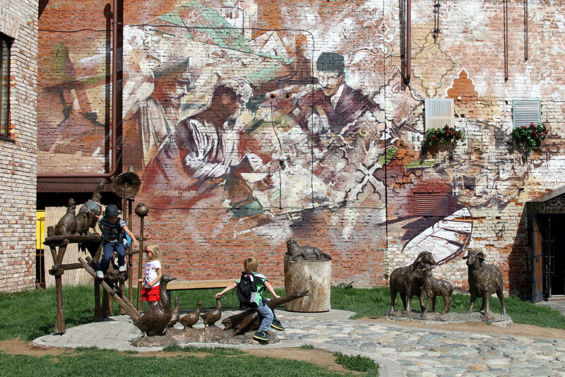 7.1. Живописный двор на улице Каюма Насыри – расположен за усадьбой купцов Кушаевых, в котором ныне находится музей чая. Во дворе вы увидите скульптурную композицию «Скотный двор» и еще одного Казанского кота. Летом на полянке за домом устанавливают большую клетку с птицами и колодец.
