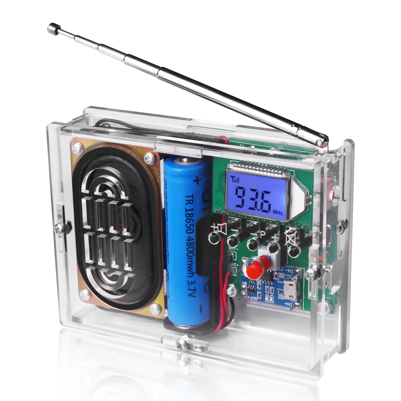В наборе предусмотрены все необходимые компоненты для создания работающего радиоприёмника, за исключением батарейки — её придётся докупить отдельно.