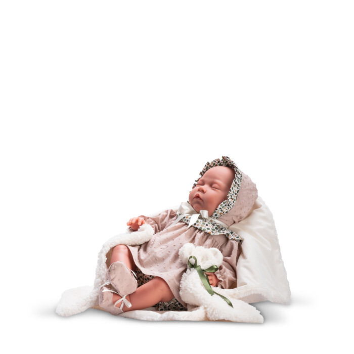 Кукла ASI Isabella, выполненная в стиле реборн, имеет рост 46 см, мягконабивное тело, а её руки и ноги изготовлены из винила. Кукла поставляется в элегантном дизайнерском наряде.