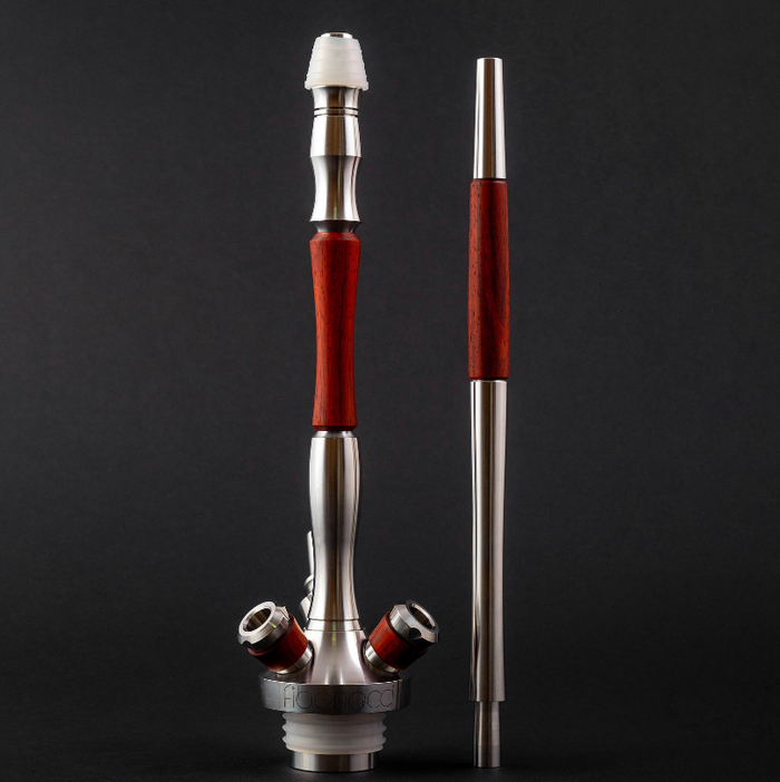 Шланг из силикона украшает фирменный логотип. Мундштук из анодированного алюминия с диффузором погружной трубы из нержавейки. Они съемные, удобно и быстро меняются.