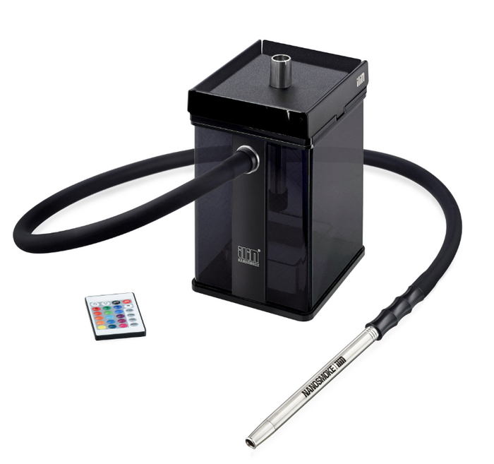 У блюдца выгнутые края, удерживающие содержимое. Шланг 1,3 м. Особый мундштук из нержавеющей стали длиной 26 см. Подсветка, пульт, антисплеш.