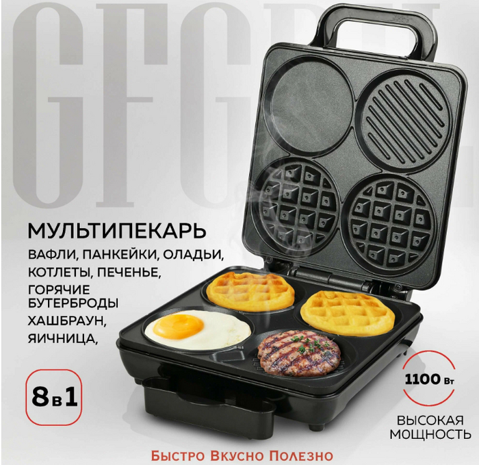 Вафельница GFGRIL GFW-038 — это универсальный и многофункциональный прибор, который станет незаменимым помощником на вашей кухне. С мощностью 1100 Вт и возможностью быстрого нагрева панелей, она идеально подходит для приготовления не только классических вафель, но и разнообразных блюд на завтрак, обед или ужин. С помощью этой вафельницы можно легко приготовить омлет, горячие бутерброды, сэндвичи, оладьи, панкейки, печенье, а также жарить котлеты для бургера и бекон. Гриль-вафельница GFW-038 совмещает функции нескольких приборов в одном, экономя пространство и время.