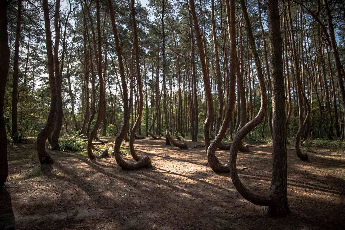 Вблизи города Грыфино растут 400 сосен, изогнутых у основания на 90 градусов. Их посадили в 1930-х, но почему они искривились — загадка. Версии: эксперименты лесников, снежные бури, магнитные аномалии... или проделки лесных духов.