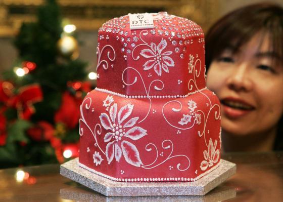 Некоторых счастливчиков не смутит и цена $130 000. Этот прекрасный белый торт призван пропагандировать ношение ювелирных изделий из платины – он украшен цепочками, ожерельями, заколками, подвесками. Этот торт мог бы пригодиться на действительно роскошной свадьбе, но пока не продается.