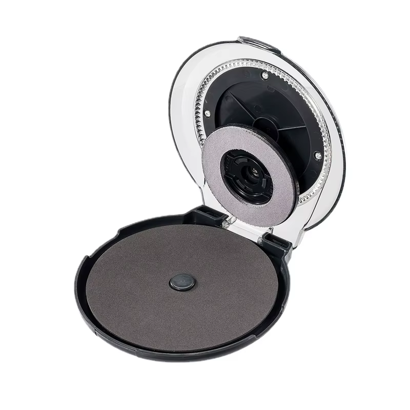 Специализированный комплект для реставрации поцарапанных компакт-дисков. В набор входит поворотный механизм и абразивные материалы разной степени зернистости для поэтапной полировки поверхности. Позволяет устранить неглубокие царапины и потертости, мешающие корректному считыванию информации. Процесс восстановления требует терпения и аккуратности, может занять до получаса на один диск.