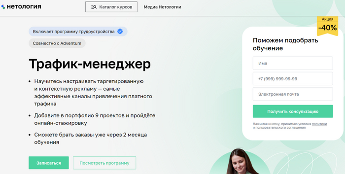 Трафик-менеджер от Нетология — лучший онлайн-курс по настройке таргетированной и контекстной рекламы.