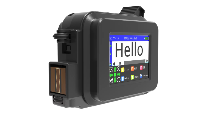 Принтер позволяет наносить надписи, штрих-коды, QR-коды, даты производства, номера партий и графические элементы на различные поверхности. Конструкция работает с деревом, пластиком, металлом, картоном и тканью, что делает устройство универсальным инструментом для маркировки. Чернила высыхают быстро и образуют стойкий слой, который не размазывается и не стирается при случайном касании.